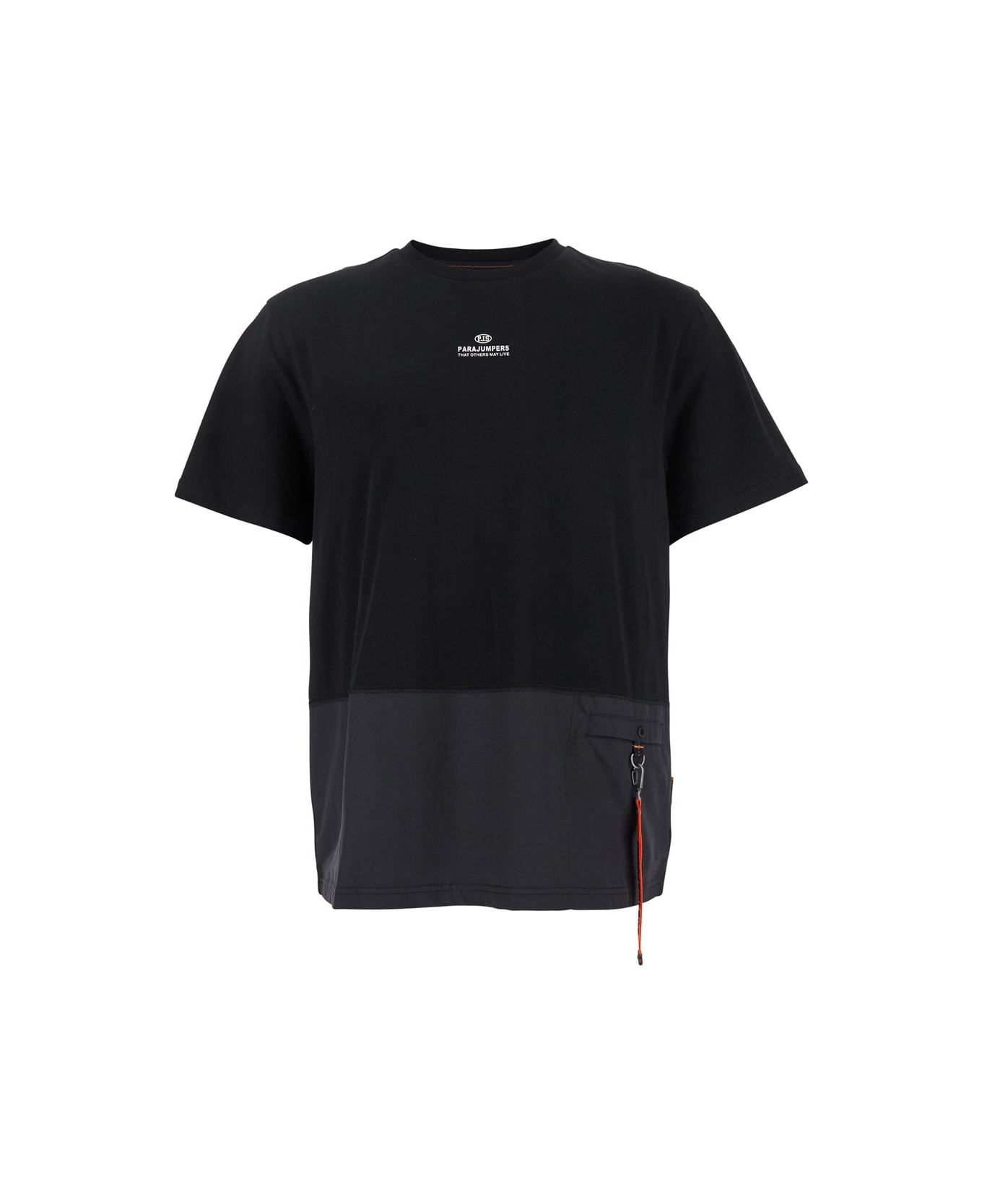 T-shirt Black Crewneck Short sleeves Logo detail on the front One front patch pocket Rescue puller detail on the front Straight hem Cotton Regular fit