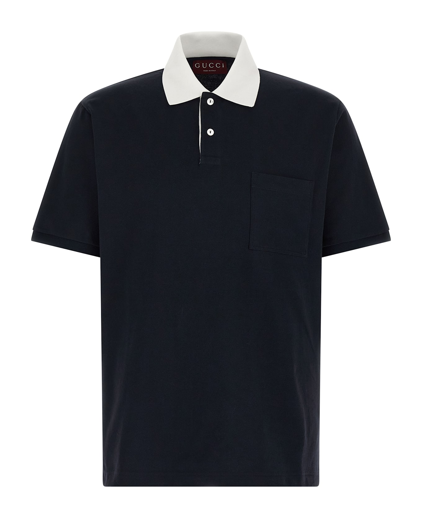 Polo shirt in stretch cotton piqué with contrasting collar, Web buttons with placket, breast pocket, short sleeves with cuffs, side slits. Composition: 97% cotton, 3% elastane