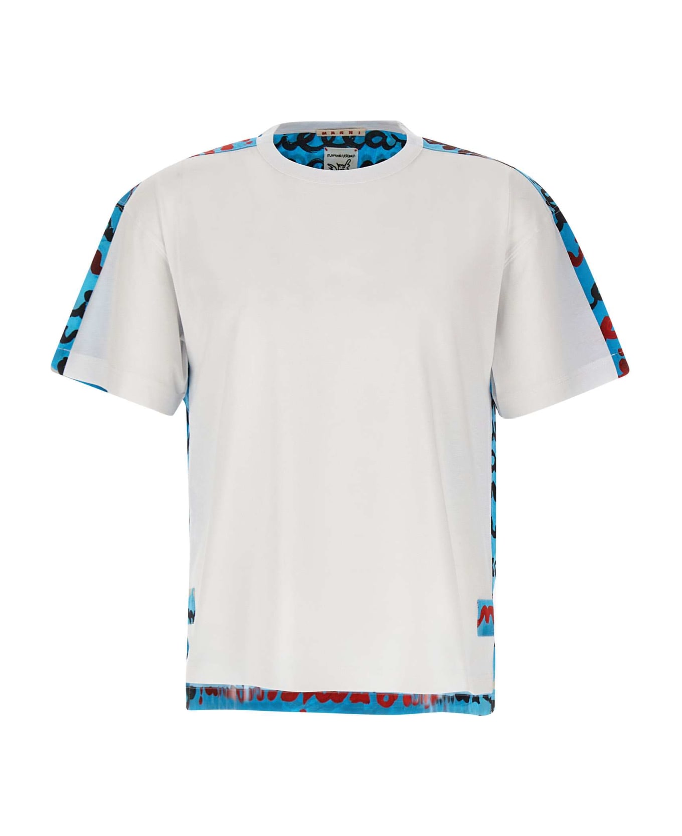 Marni man t-shirt in cotton poplin with Maremarni print, ribbed crew-neck, short sleeves, front panel in white cotton jersey, asymmetric hem with side slits, comfy fit Composition: 100% Cotone;