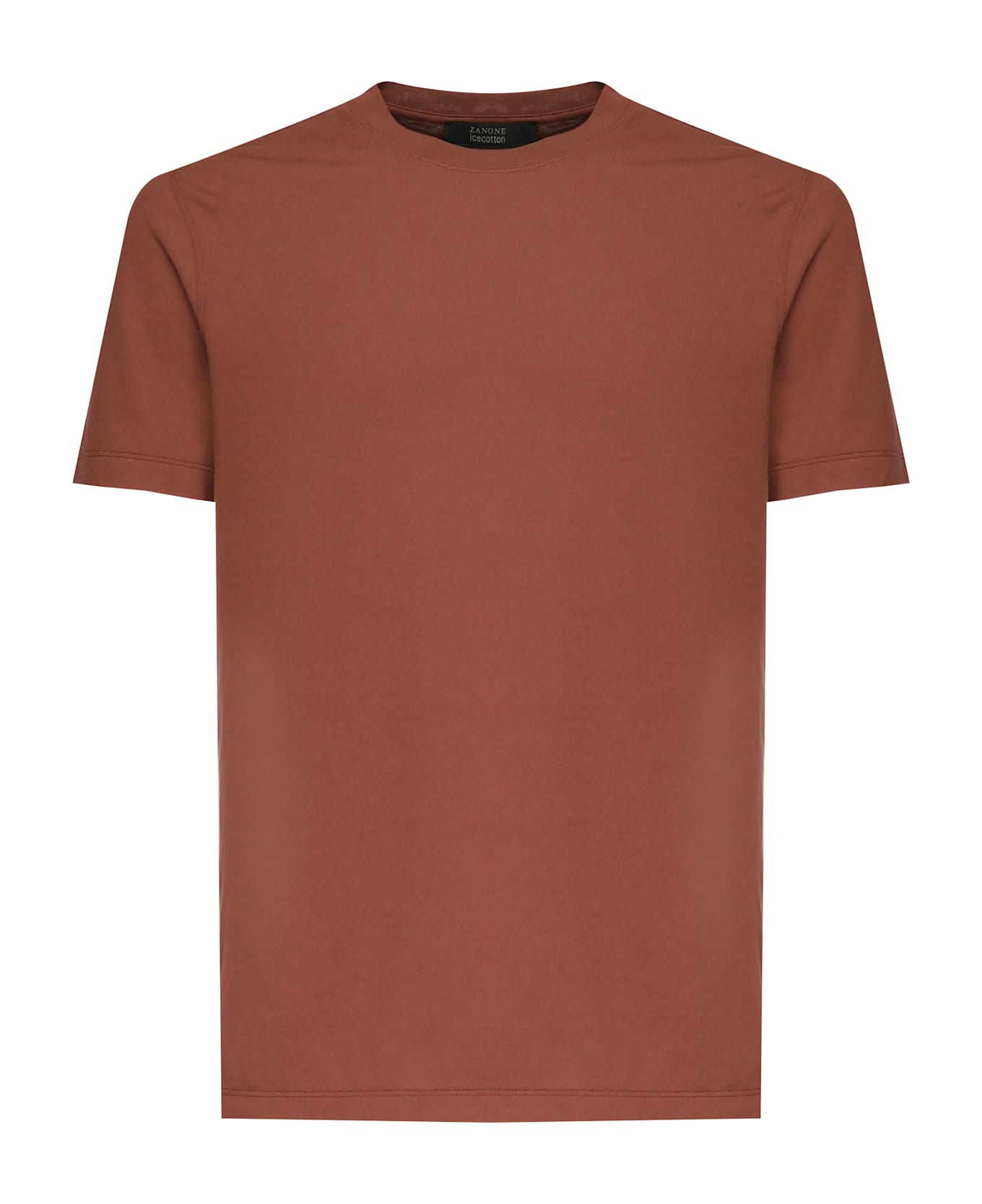 -Short-sleeved T-shirt -Crewneck -Straight hem -The size shown in the photo is 48 IT -Made in Italy -Color: Brown