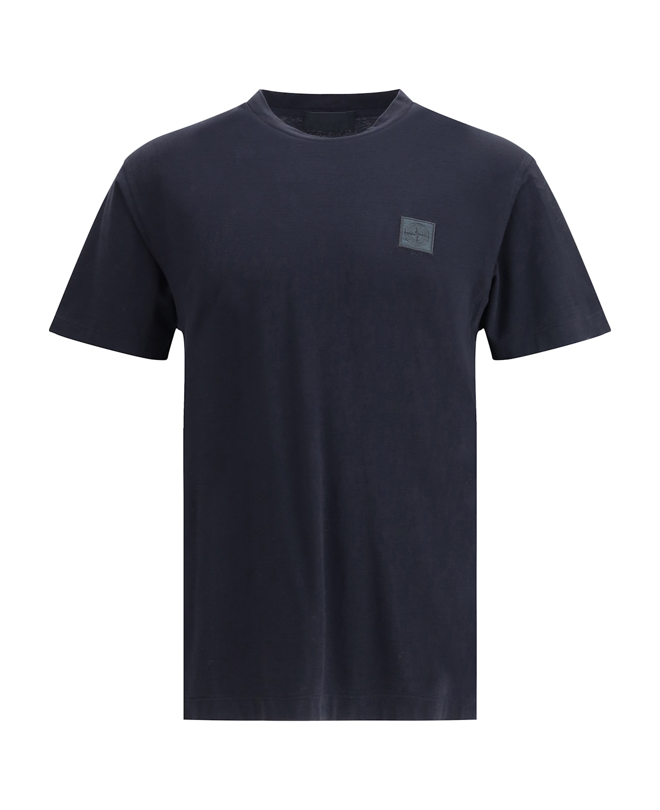 The stone island crew-neck t-shirt elevates a wardrobe essential with the brand s signature approach. crafted from cotton crêpe jersey, it features a garment-dyed finish, giving each piece unique depth of color. designed with a slim fit, short sleeves, and a straight hem, it is defined by the iconic monochrome compass logo appliqué at the chest. a refined staple that blends minimalism with identity.