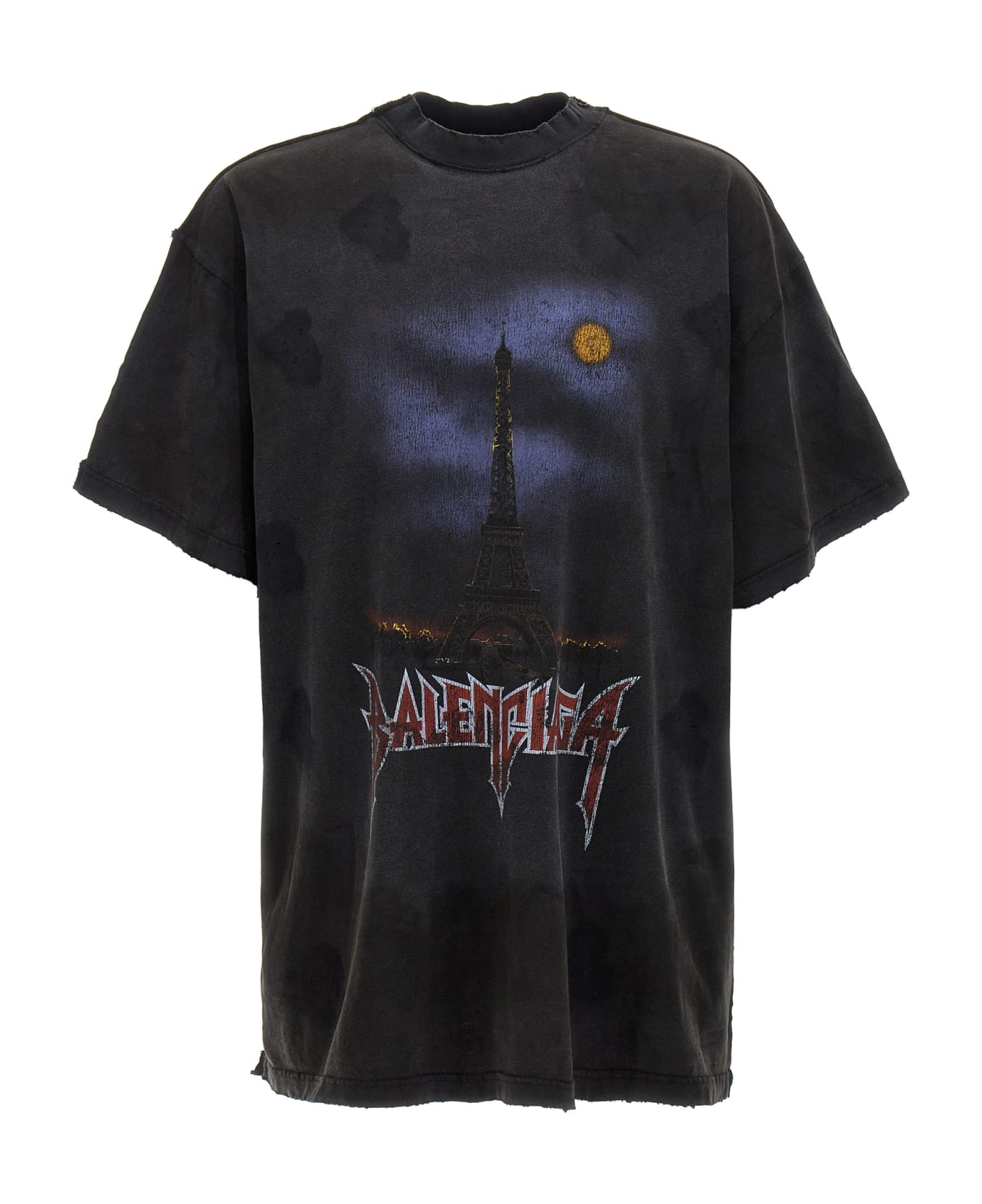 'Double Front Paris Moon' vintage effect cotton t-shirt, front and back print, used-effect details, crew neck, short sleeves. Composition: 100% cotton