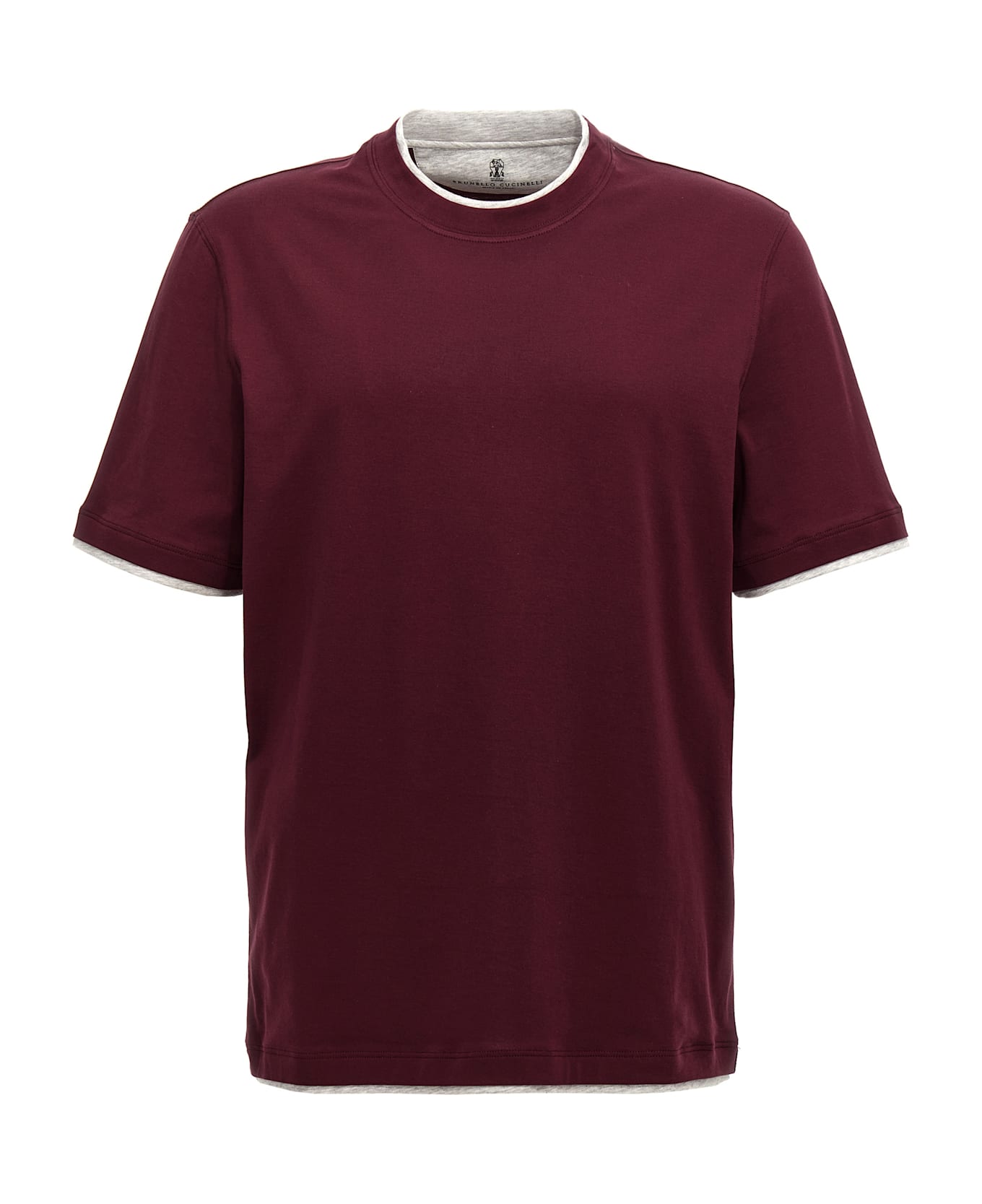 Cotton, crewneck t-shirt with short sleeves and a double layer effect. Composition: 100% cotton