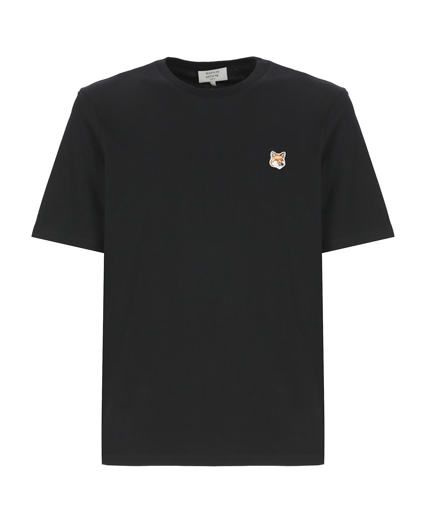 - Black Maison Kitsune cotton t-shirt for man - Round neckline - Short sleeves - Front embroidered Fox Head patch