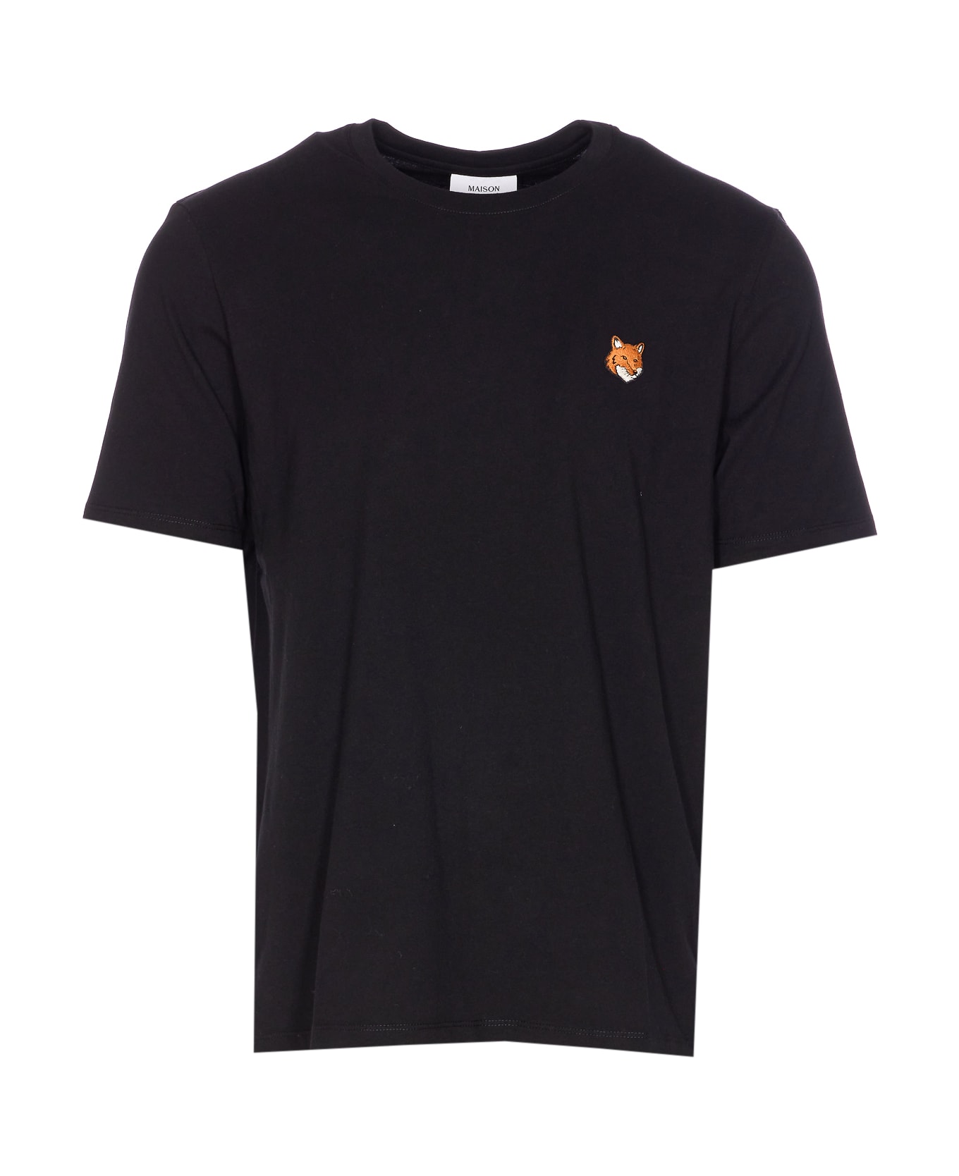 Maison Kitsune' black Fox Head t-shirt, crewneck, patch logo on the front