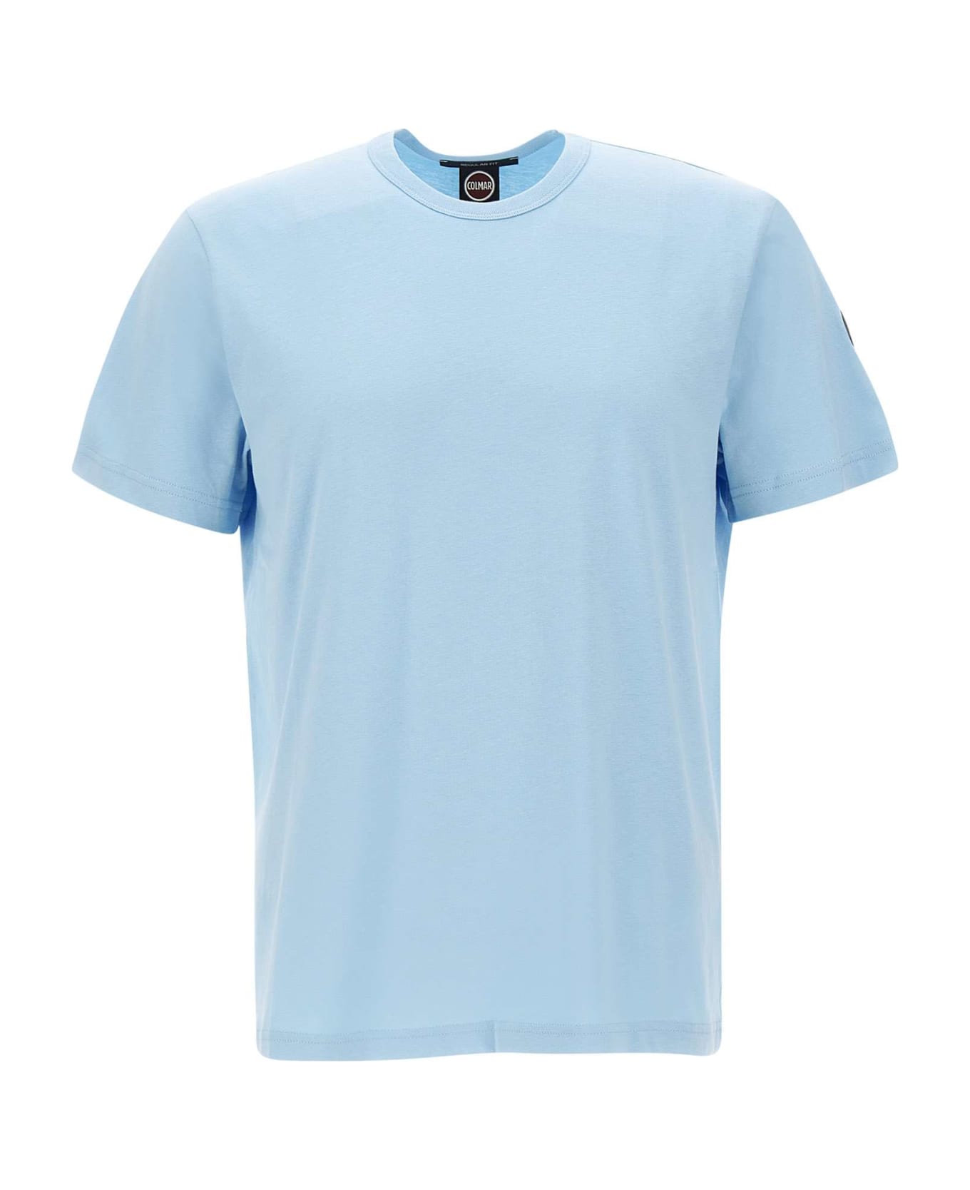 Colmar Originals "Frida" men's cotton t-shirt, pastel light blue, short sleeves, crew neck, iconic rubberized logo patch on left sleeve, regular fit, perfect for spring and summer season.