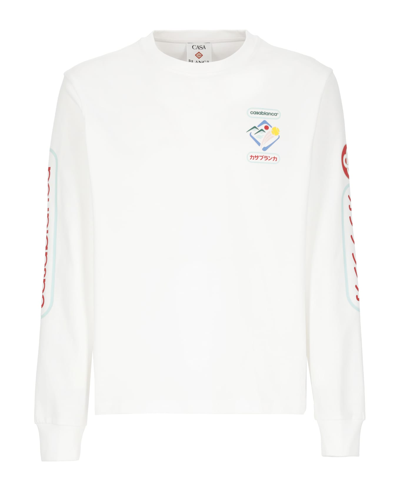 - White Casablanca cotton t-shirt for man - Crewneck - Long sleeves - Front contrasting color Fuji Dream print Composition: 100% Cotton