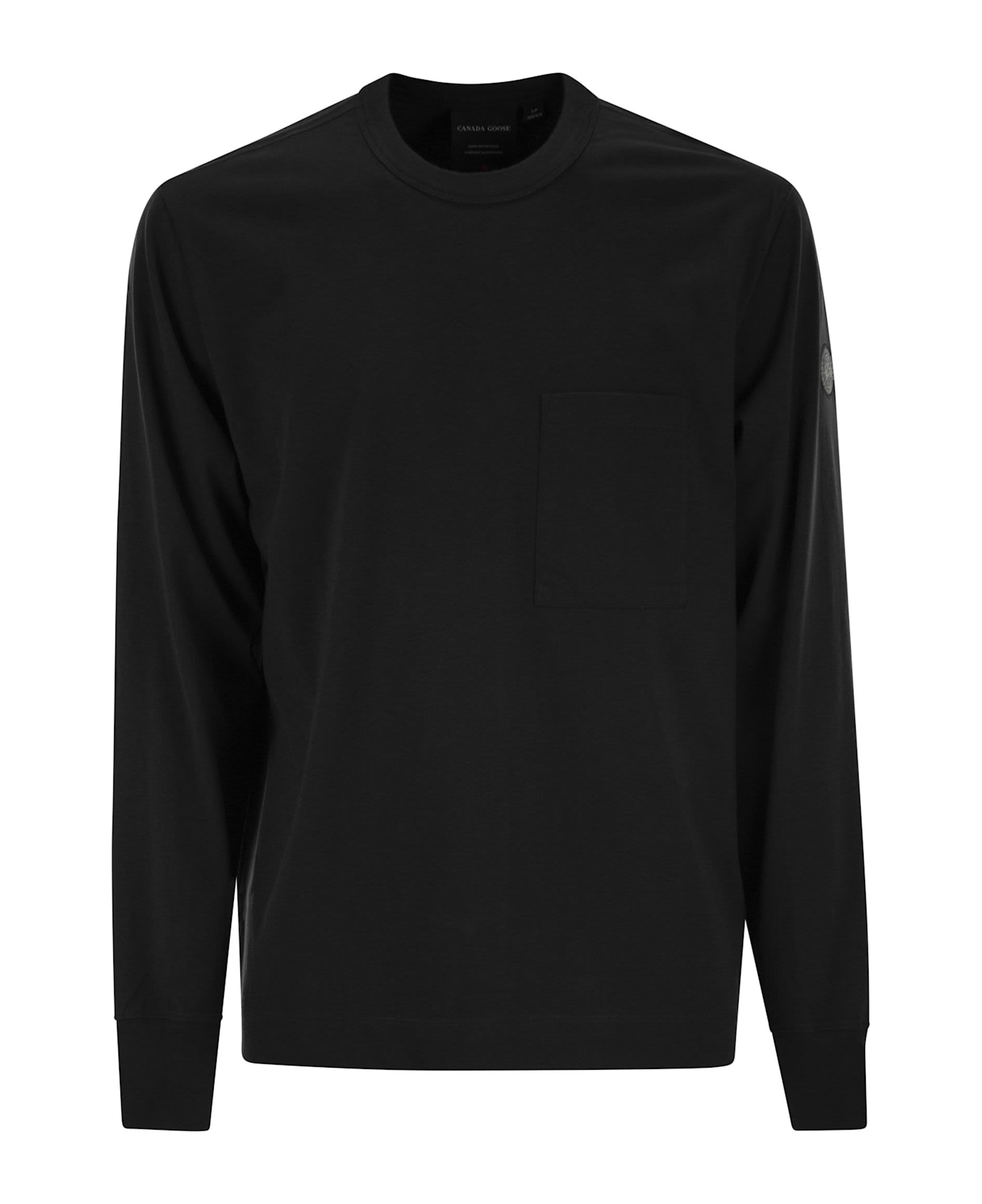 The Gladstone long-sleeved T-shirt is made of 100 percent cotton jersey to reduce water consumption and eliminate pesticide use, supporting the mission to reduce impact on the planet. With a close-to-skin feel and a premium hand, the Gladstone offers maximum breathability and versatility in an intentionally relaxed fit. - 5°C to -5°C - Hip Length - Black Logo - Ribbed collar - Slightly dropped shoulder - Clean finished hem DESIGNER ID: 1402MB 61 Composition: 100% Cotton