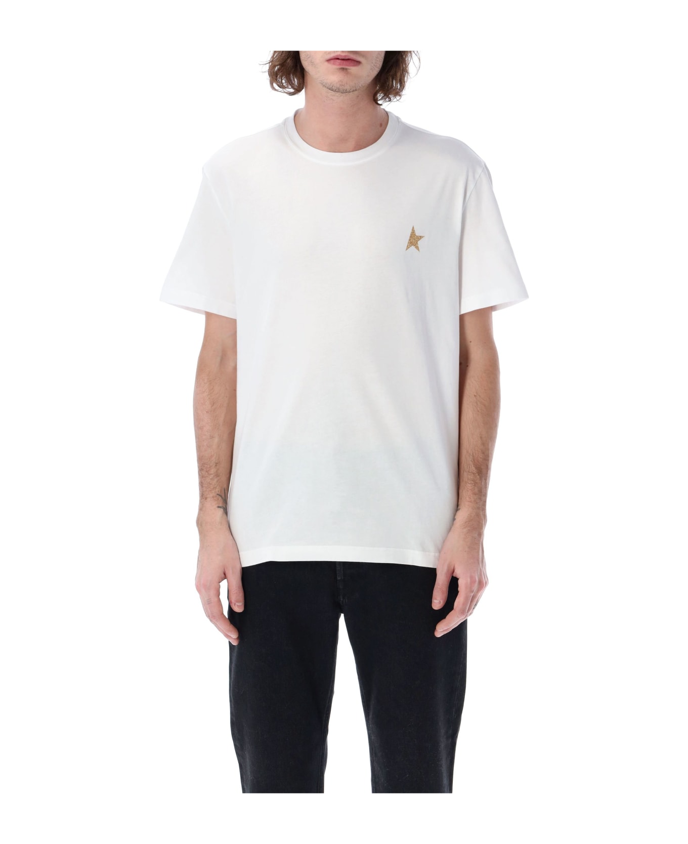 Cotton Glitterprint Star T-shirt By Golden Goose. Featuring: Ribbed Crewneck Short Sleeves Glitter Star Printed At Chest Straight Hem Model Is 1,90 M Tall And He Is Wearing Size L