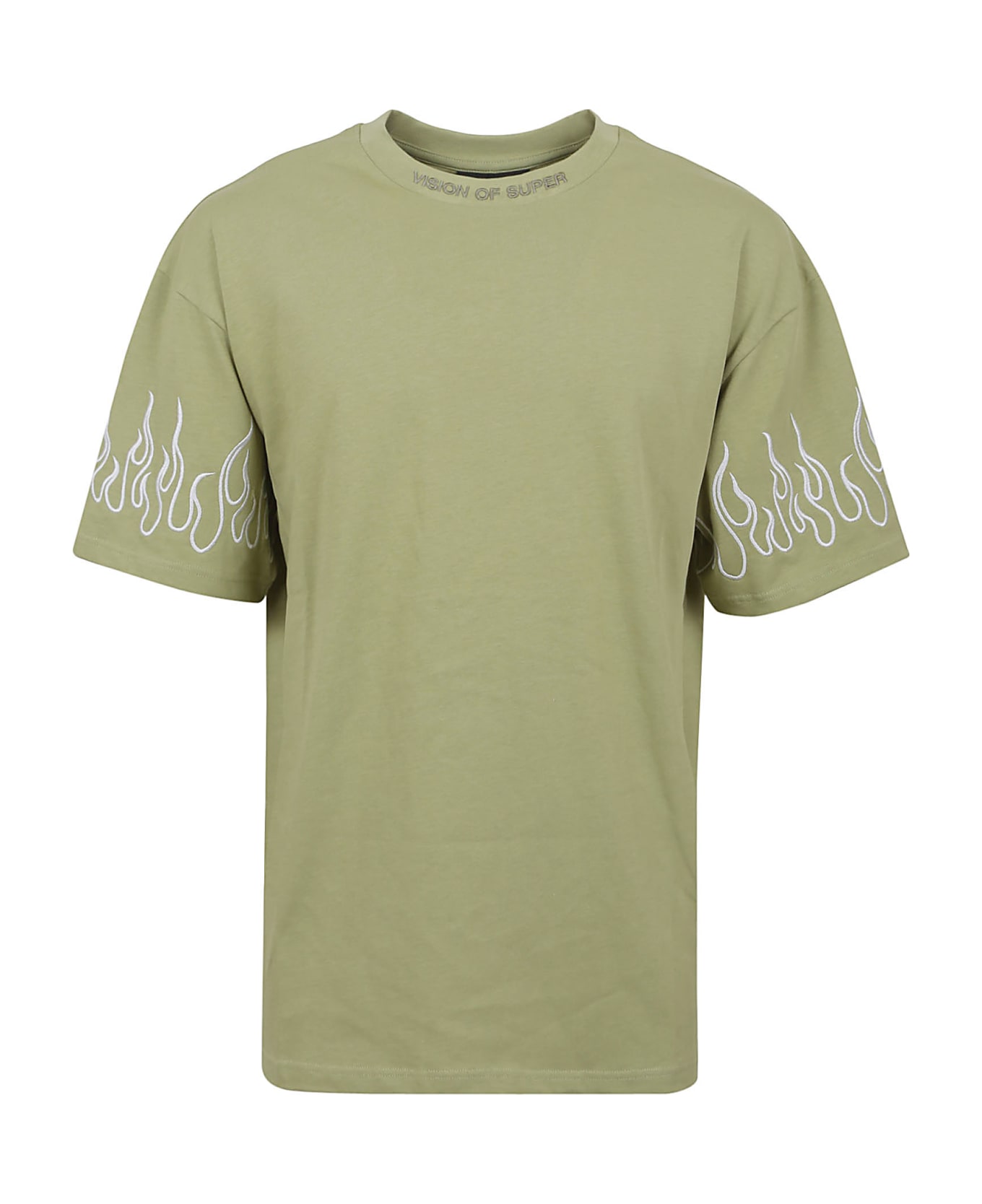 Green Army Green T-shirt With Embroidery Flame from Vision of Super