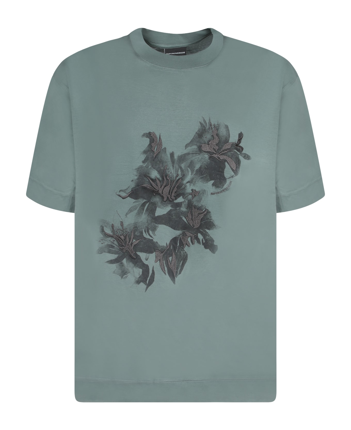 This exclusive Emporio Armani T-shirt captivates with its bold floral design on a green backdrop, perfect for a casually sophisticated look. Composition: 70% Lyocell, 30% Cotton