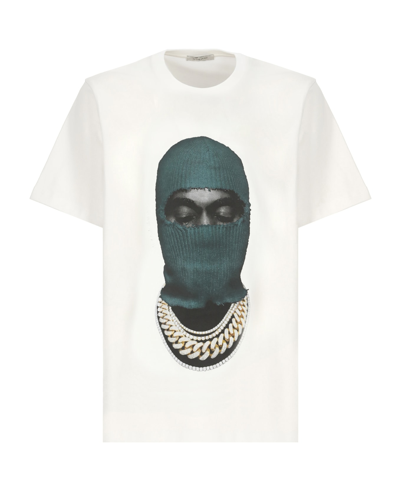 - White Ih Nom Uh Nit cotton t-shirt for man - Crew neck - Short sleeves - Front contrasting colour print - Rear contrasting colour logo