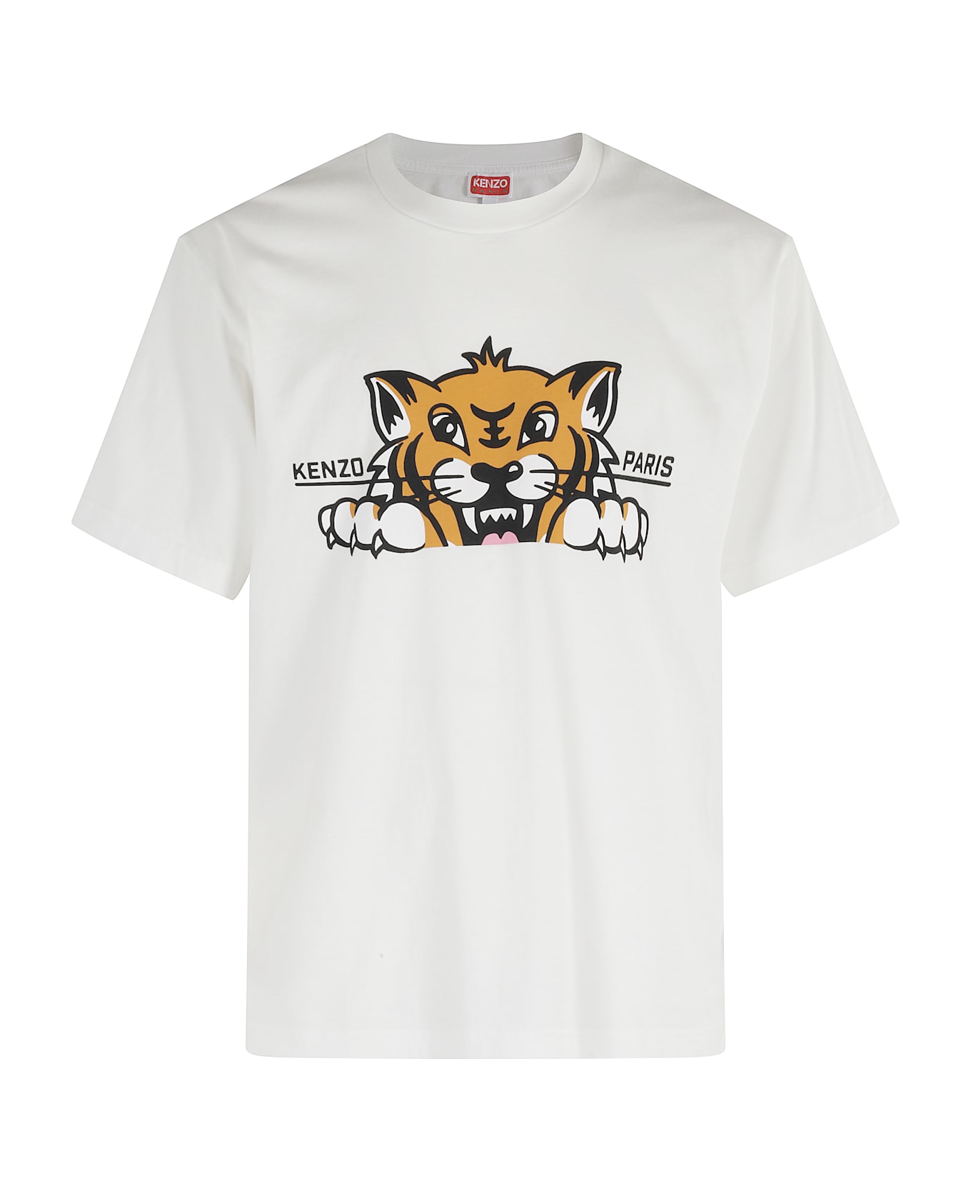 T-shirt - Kenzo - White color - Happy tiger oversized pattern - Round neck - Short sleeves - Print on front - Print on back.