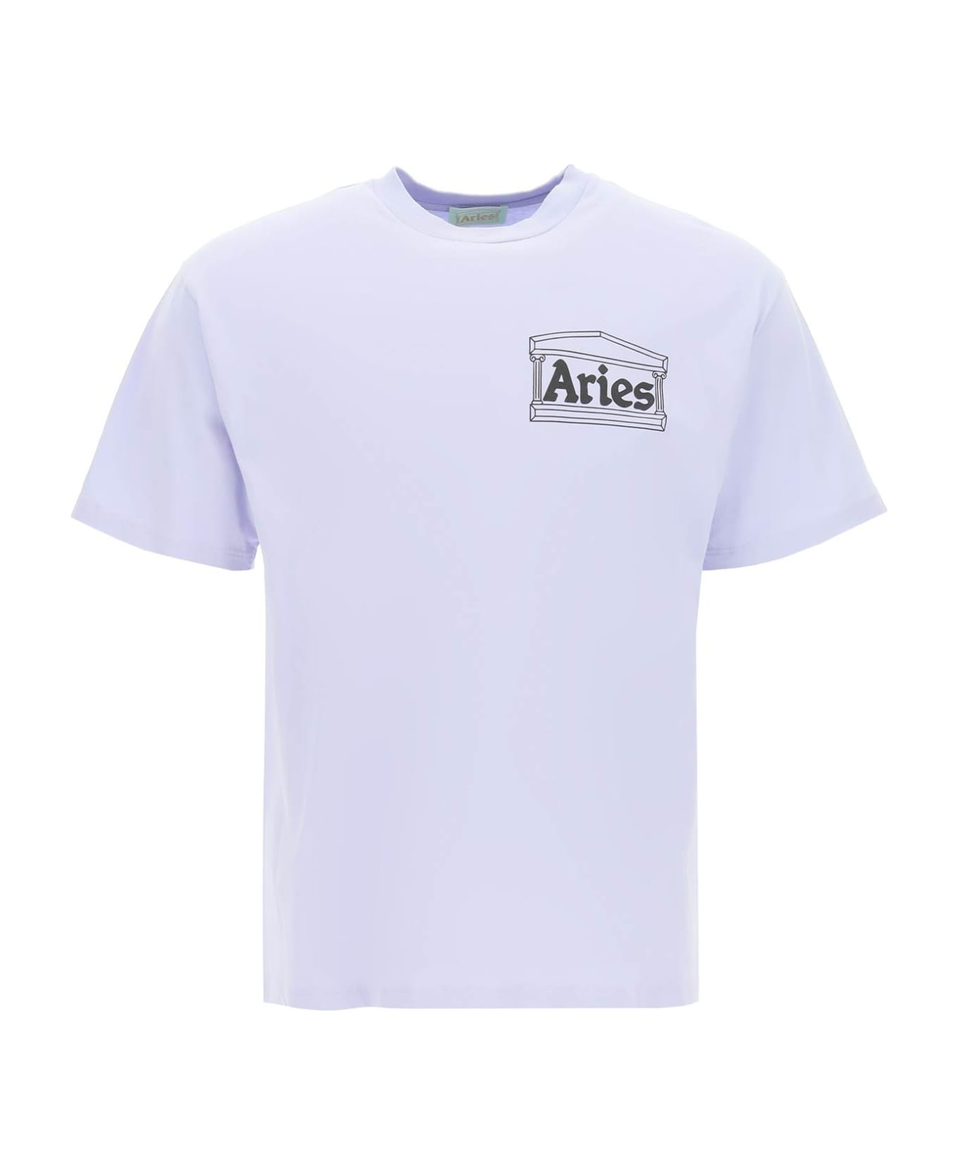 Aries short-sleeved t-shirt in pure cotton jersey with Temple logo printed on the chest and "Into Trouble" screen-print on the back. Relaxed fit, ribbed crew neck. The model is 185 cm tall and wears a size M.