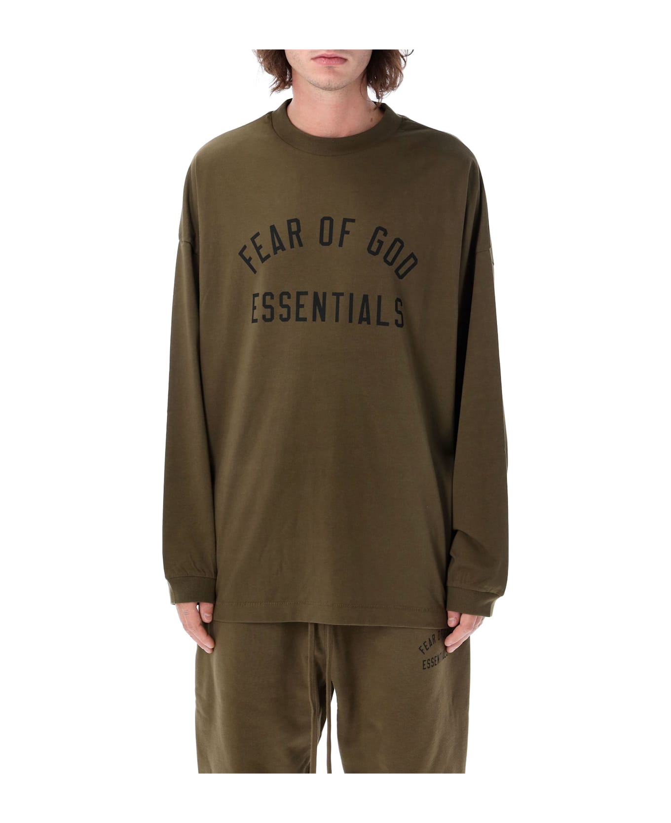 Jersey Long Sleeves T-shirt By Essential Fear Of God. Featuring: Ribbed Crew Neck Long Sleeves With Ribbed Cuffs Dropped Shoulder "fear Of God Essential" Screen Print At Front Essential Fear Of God Rubberized Label At Back Oversized Fit Straight Hem Model Is 1,90m And Wears Size L
