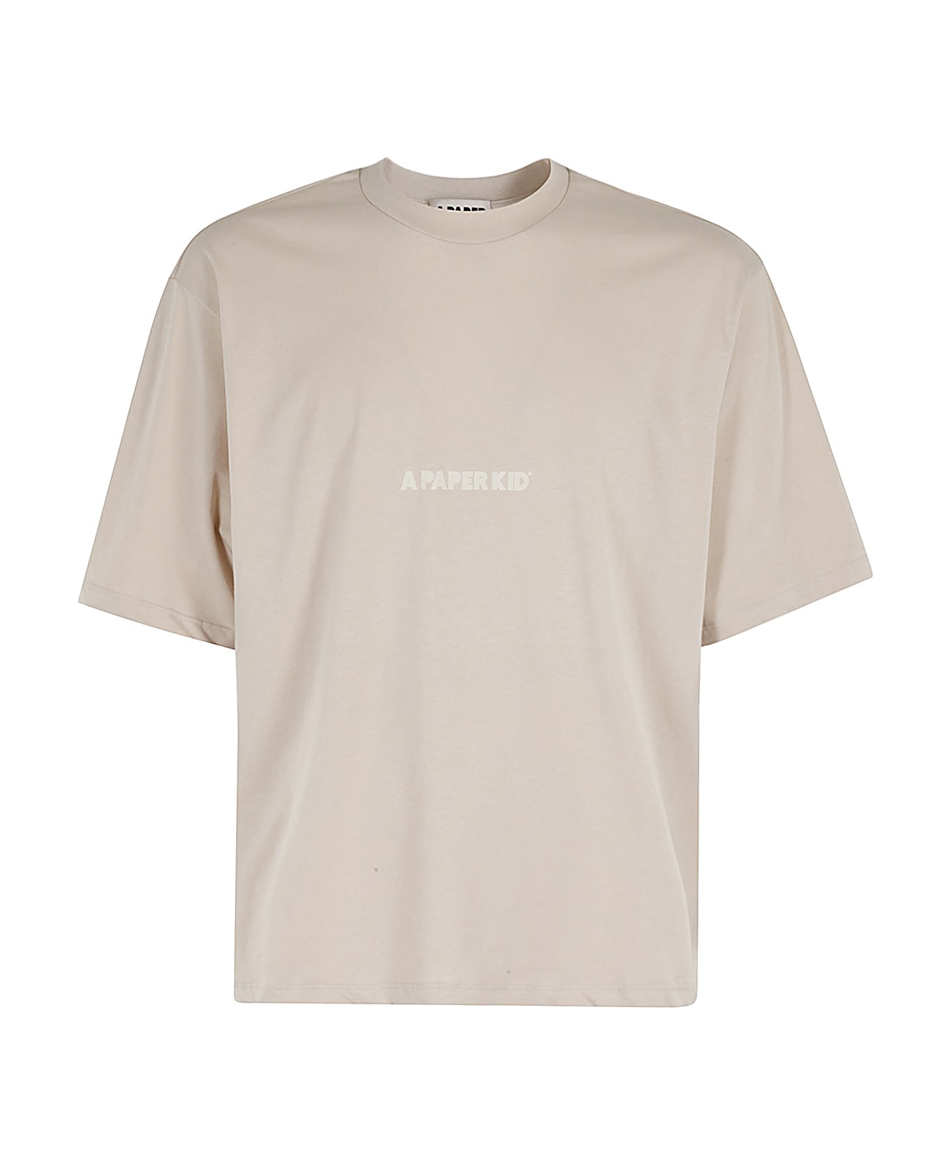 Jersey T-Shirt - A Paper Kid - Sand color - Crew neck - Short sleeve - Contrasting printed front and back logo - Boxy fit