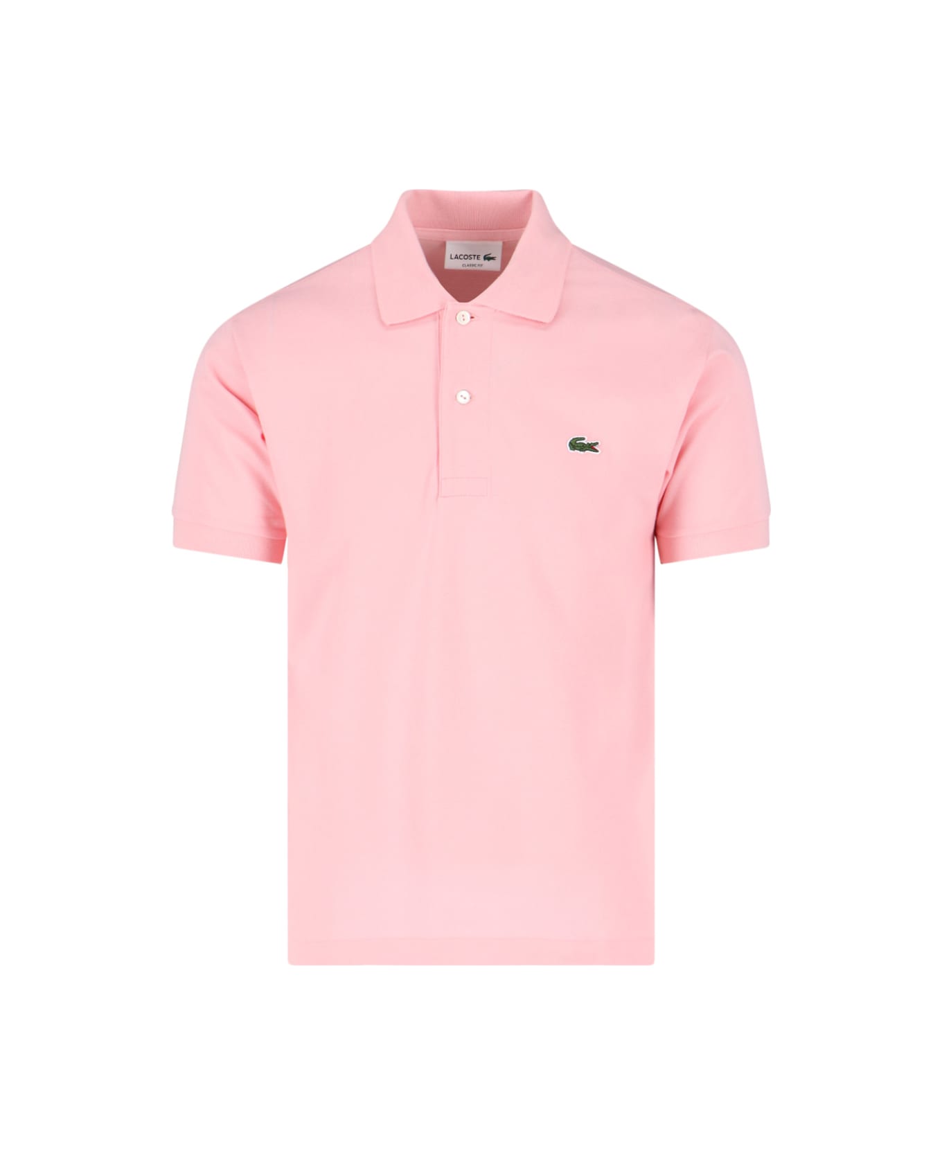 Lacoste 'L. 12. 12' polo shirt in pink cotton with classic collar, short sleeves, front buttons, logo patch on the chest, straight hem.