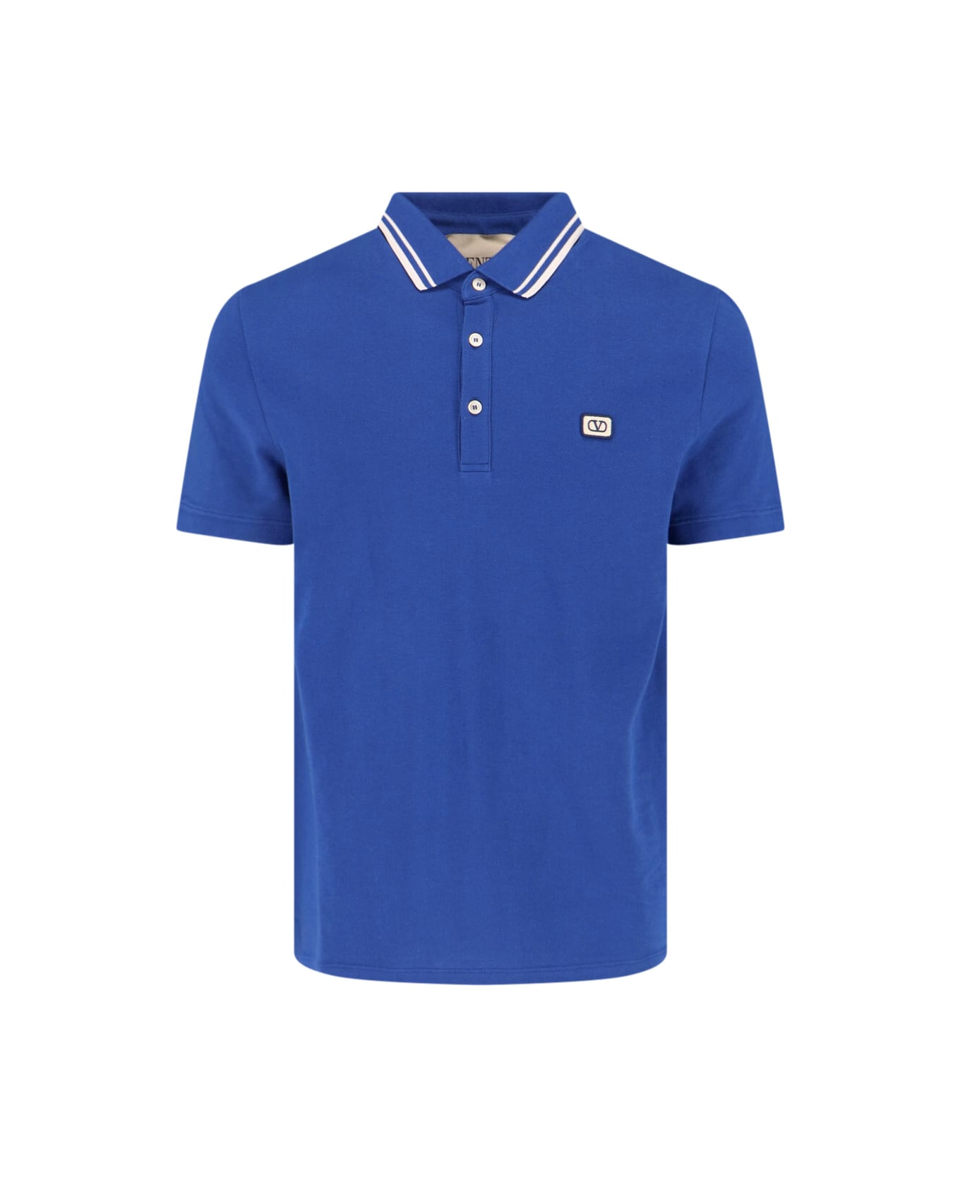 Valentino logo polo shirt in blue cotton with classic collar, front button closure, short sleeves, "VLogo Signature" logo patch on the front, straight hem. Composition: 91% Cotton, 9% Polypropylene