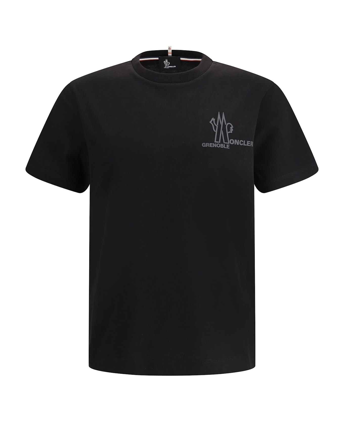 Moncler grenoble's logo t-shirt is a casual yet stylish piece featuring a ribbed crew neck for comfort and practicality. the brand's iconic logo and signature printed on the front add a distinctive and classy touch, making this t-shirt a great choice for those looking for a sporty yet sophisticated look. perfect for pairing with jeans, pants or shorts, it is ideal for a casual-chic outfit that expresses both elegance and recognizable style.