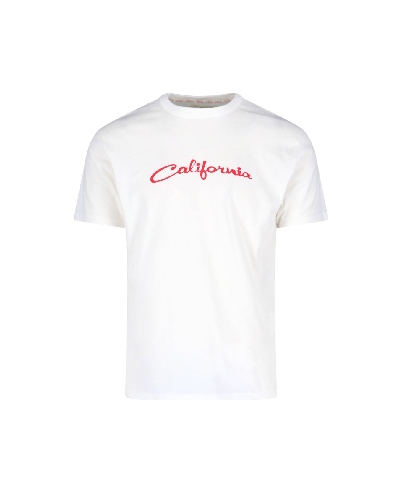 Erl logo T-shirt in white cotton with crew neck, short sleeves, red logo print on the chest, straight hem.