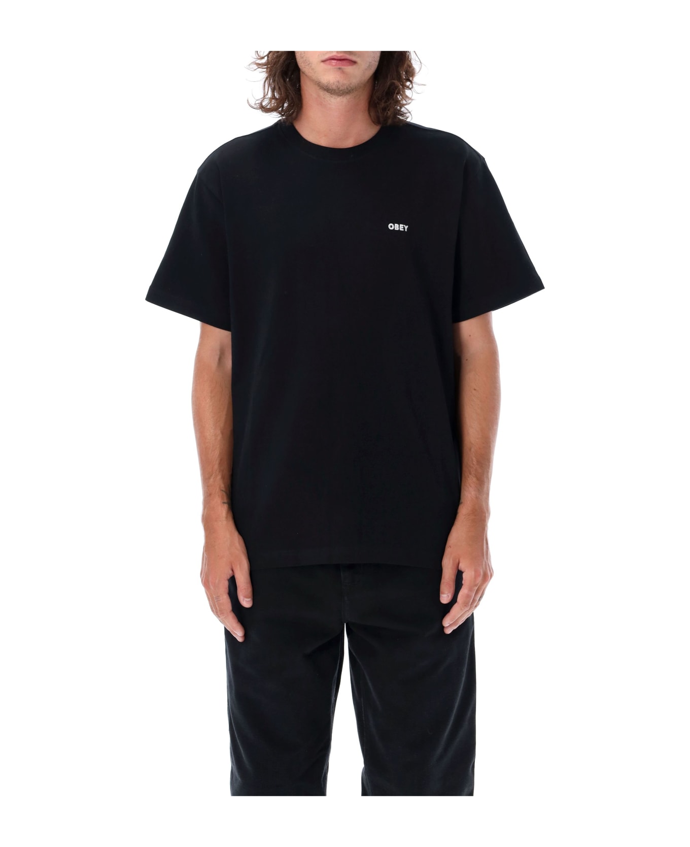 Logo Tee By Obey. Featuring: Crewneck Short Sleeves Ribbed Collar Embroidered Logo Lettering At Chest Plain Color Relaxed Fit Model Is 1,90 M Tall And He Is Wearing Size L
