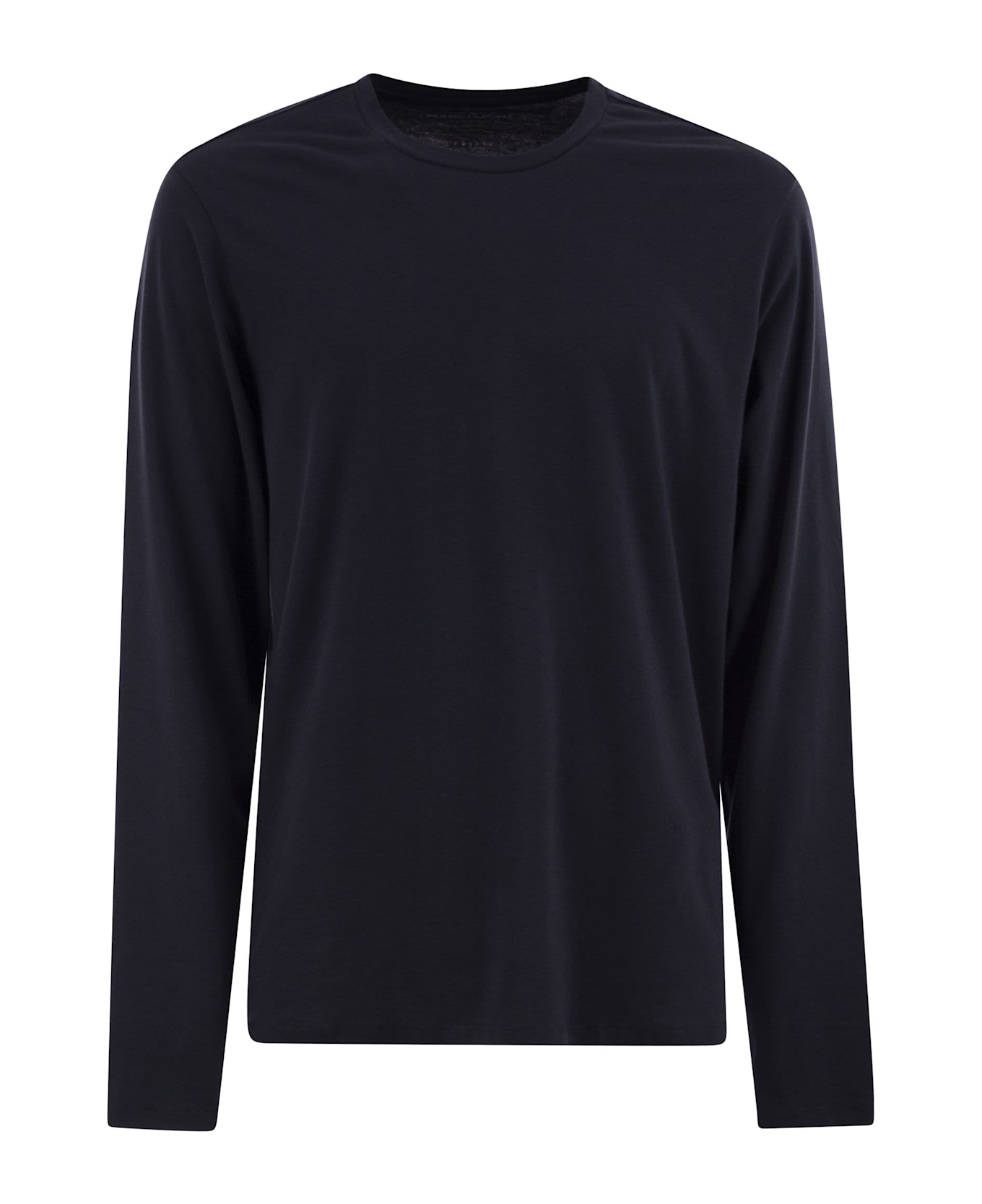 Basic crew-neck T-shirt with long sleeves and slim fit: a simple and versatile passepartout garment. The cotton and elastane composition makes this shirt precious and comfortable, perfect to be combined with other garments or worn alone for an essential look. An essential and basic material, made precious and luxurious thanks to a special weaving process using only the finest fibres. Cotton is processed with elastane to add extra comfort and softness to the composition. - Long sleeves - Crew neck - Slim fit DESIGNER ID: S25M090HTS020 003