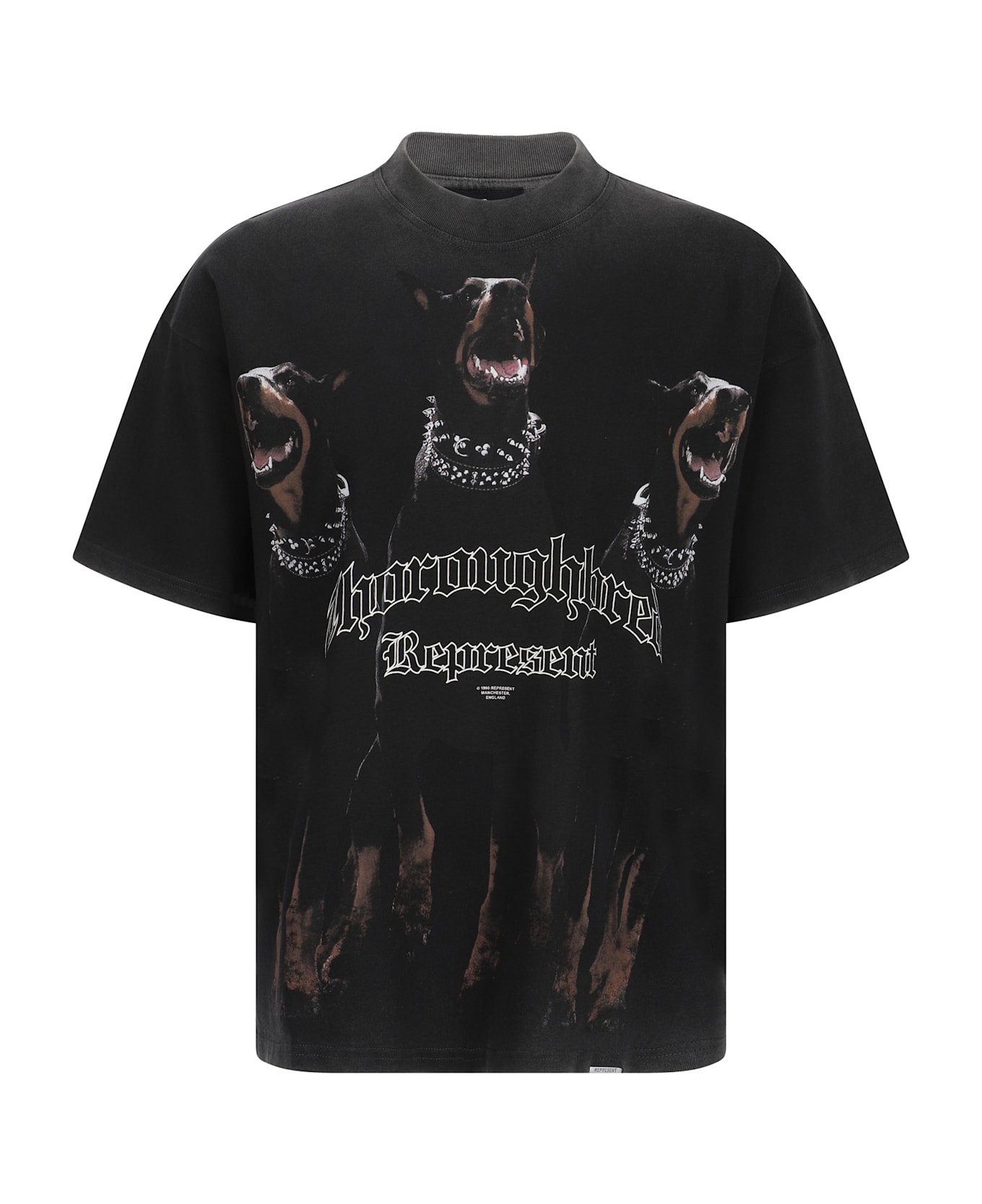 The t-shirt by represent is made of cotton and features a ribbed crew neck, providing a comfortable and structured fit. the design features a contrasting maxi print with the brand's iconic monogram on the front, giving it a distinctive and contemporary look. perfect for a casual yet sophisticated outfit.