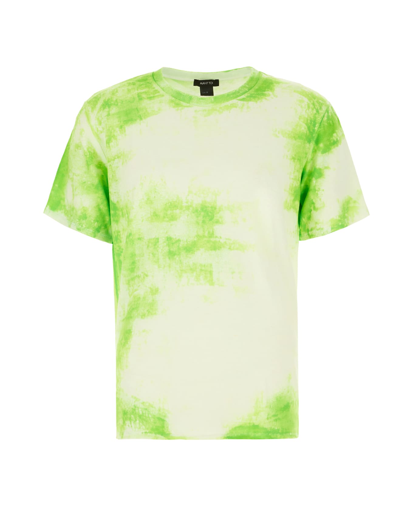 T-shirt realized in stretch linen blend characterized by painting drops print on the entire surface. -Ribbed crew-neck