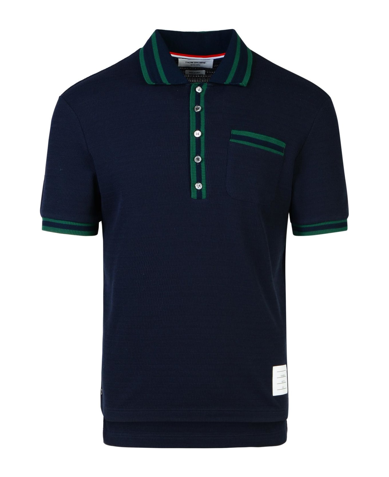 Ribbed polo collar, five-button polo closure, patch pocket on the chest, iconic contrast logo patch on the front, short sleeves with ribbed trims, dipped hem with side slits embellished with tricolor bands and buttons. Composition: 100% cotton