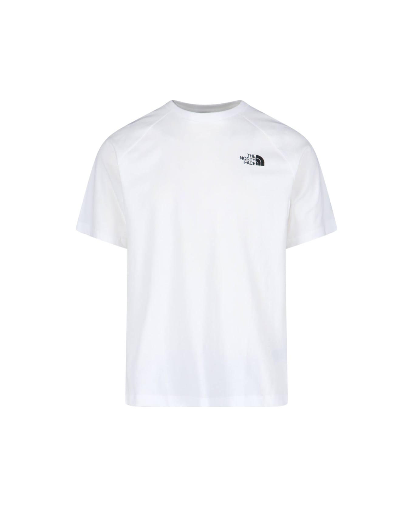 The North Face 'North Faces' white cotton crew neck t-shirt with short sleeves, contrast chest logo print, maxi multicolor print on the back, straight hem.