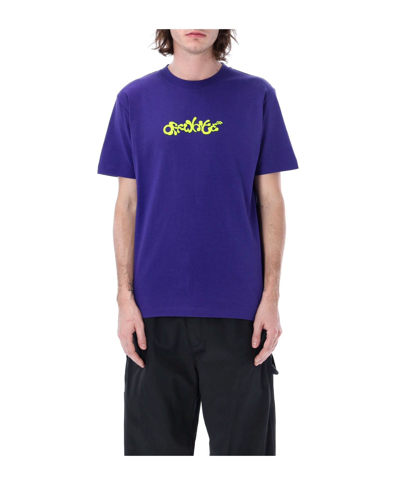 Cotton Opposite Arrow Slim T-shirt By Off-white. Featuring: Crew Neck Short Sleeve Flocked Logo At Front Arrow And Slogan Printed At Back The Model Is 1,90 M Tall And He's Wearing Size L