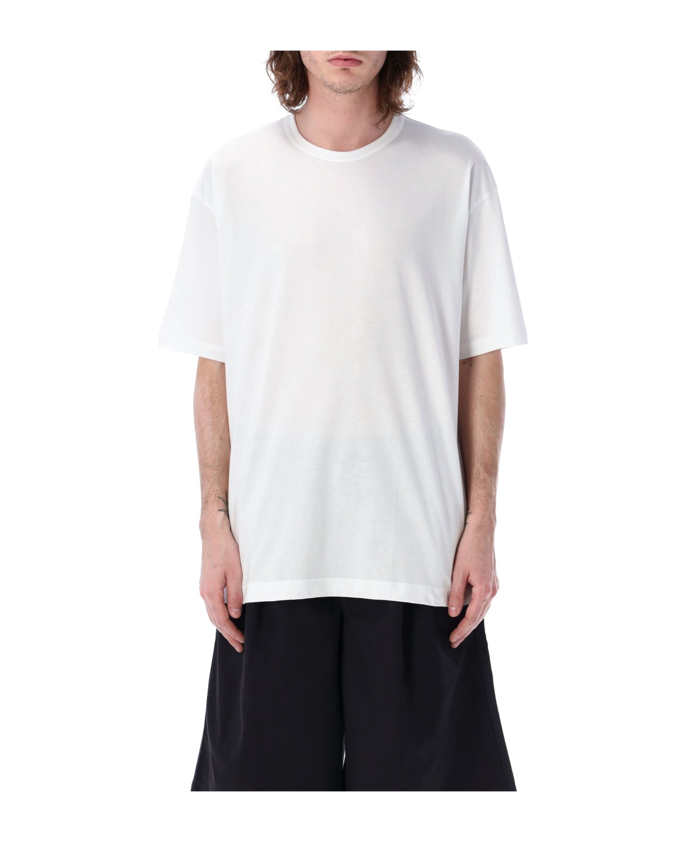 Cotton Over Logo T-shirt By Comme Des Garçons Shirt. Featuring: Crew Neck Short Sleeves Logo Print At Back Straight Hem Loose Fit The Model Is 1,90 M Tall And He's Wearing Size L