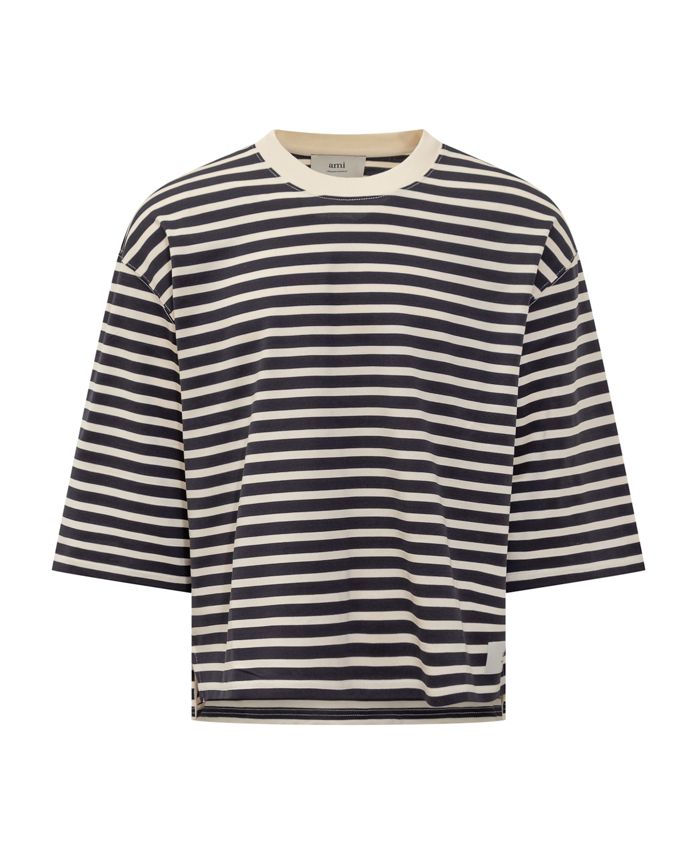 Striped T-shirt with crew neck. Oversize fit. Logo applied on the bottom. Composition: 100% Cotton