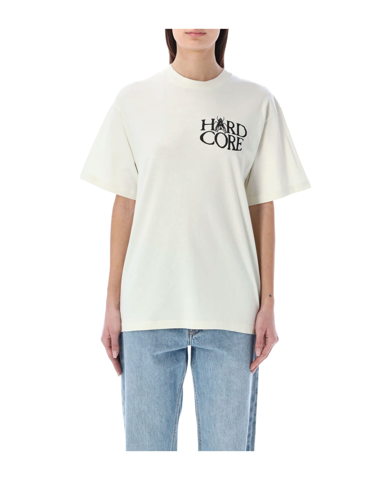 Cotton Palm T-shirt By Aries. Featuring: Crew Neck Short Sleeves Graphic Print At Chest Multicolor Palm Tree And Logo Printed At Back Straight Fit The Model Is 1,72m Tall And She's Wearing Size S The Model Is 1,90m Tall And He's Wearing Size L