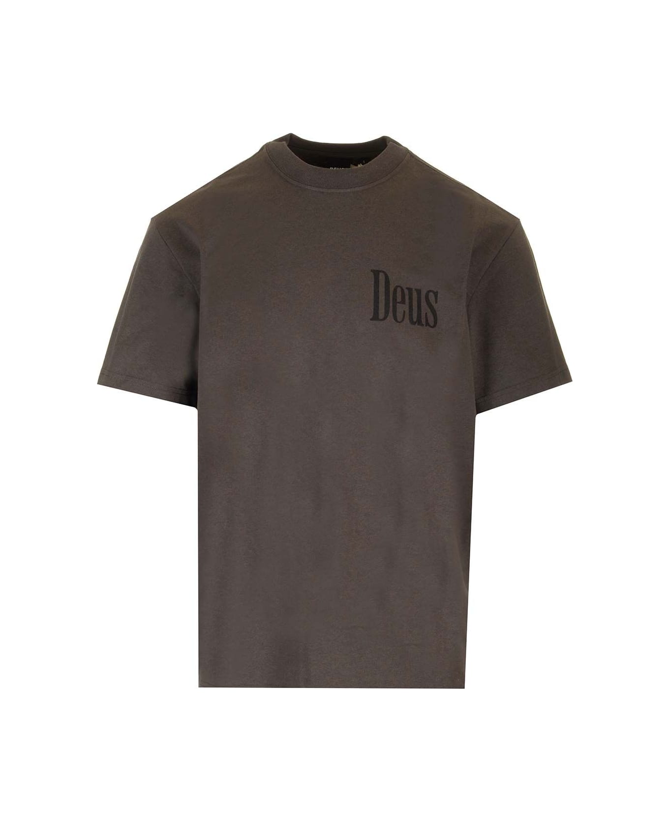 Ivory short-sleeved cotton blend T-shirt with red lettering print on the back by Deus Ex Machina.