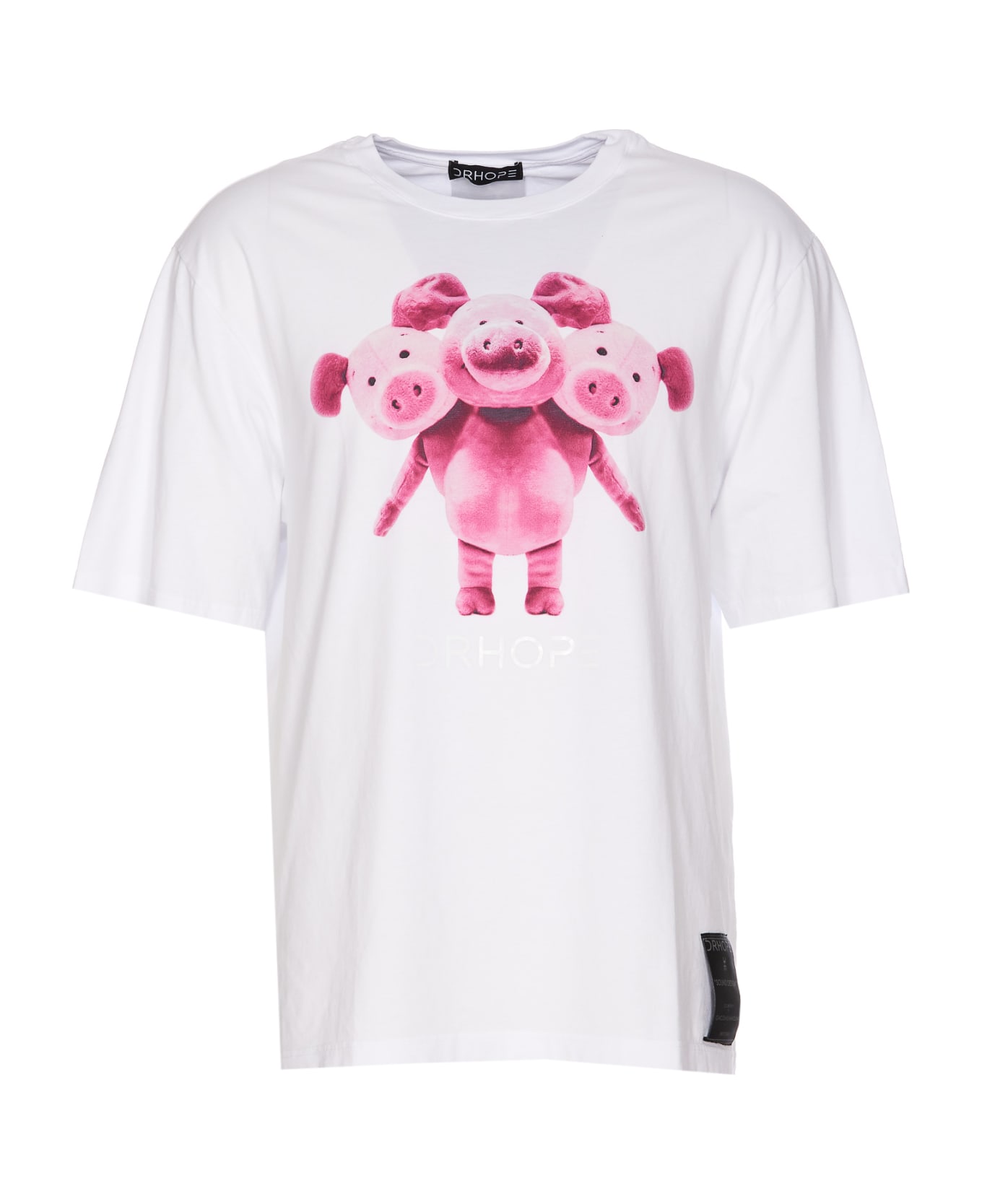 Drophe white t-shirt, round neck, frontal pig print, frontal patch logo Composition: 100% Cotton