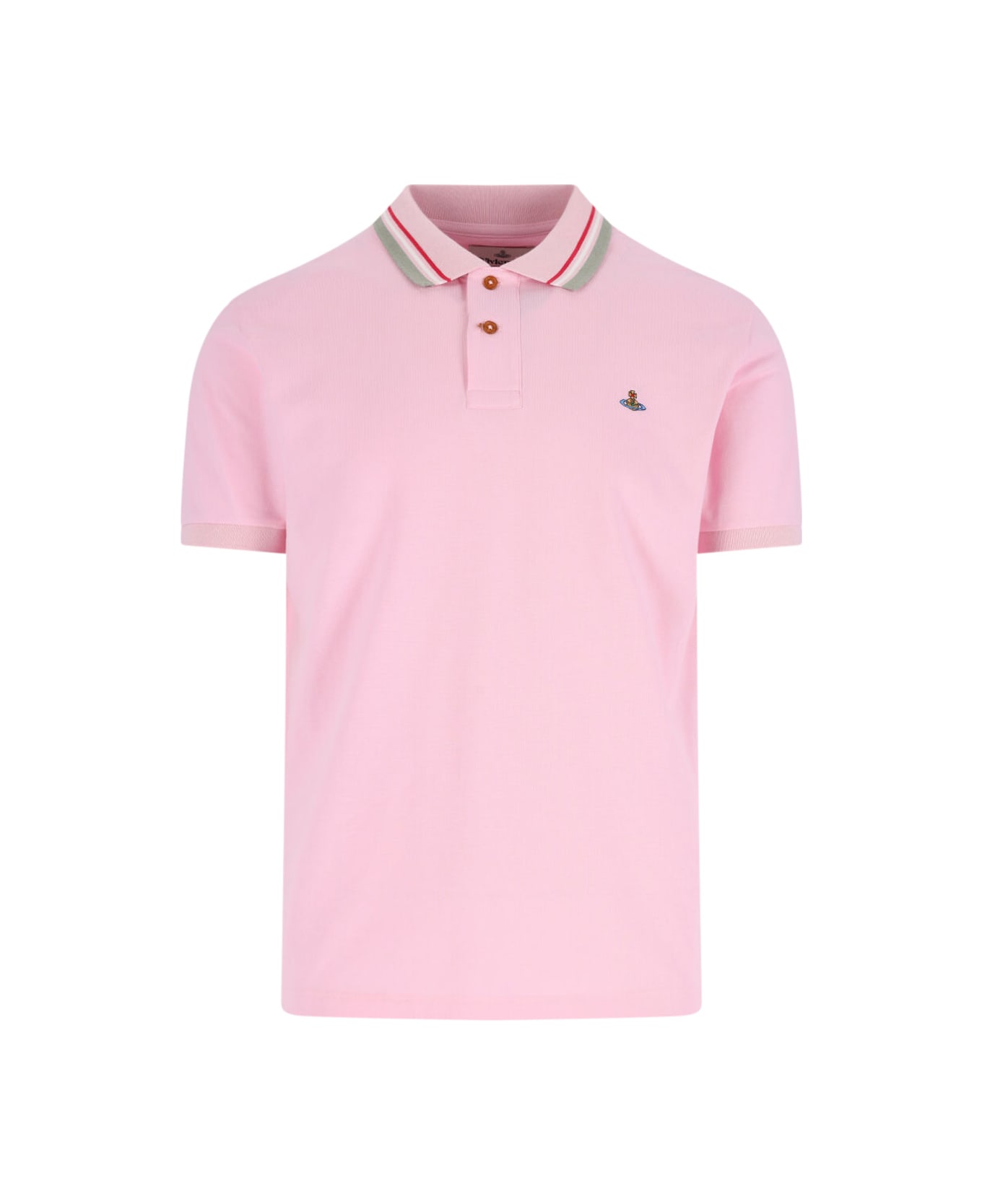 Vivienne Westwood Orb polo shirt in pink cotton with classic collar, multicolor striped pattern detail, button closure, multicolor logo embroidery on the chest, and straight hem. Composition: 100% Cotton
