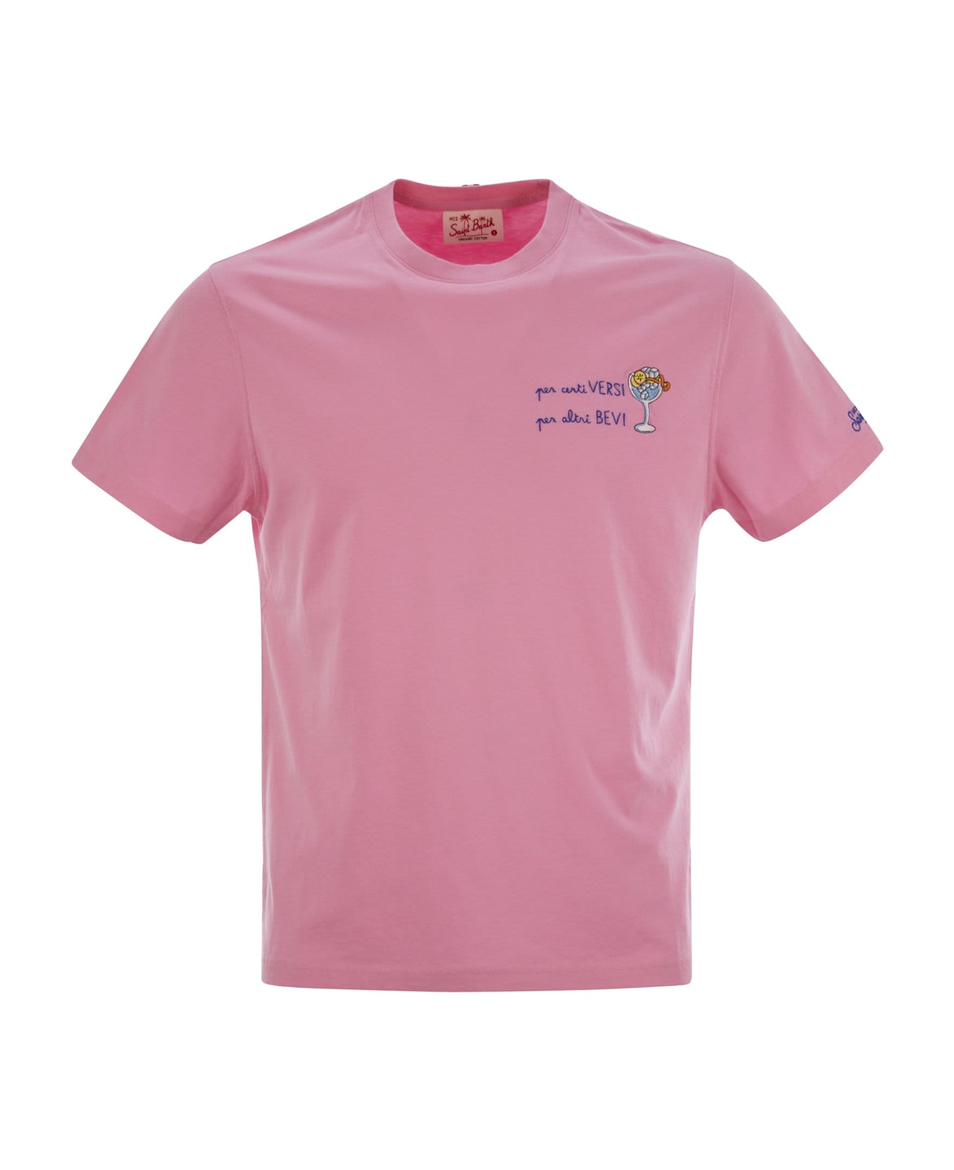 Introducing the Portofino T-shirt by MC2 Saint Barth. This half-sleeve t-shirt for men is made of 100% organic cotton jersey fabric, piece-dyed for a unique look. Weighing 180 g, it offers a comfortable regular fit. It is distinguished by the embroidery on the left chest in MC2 Saint Barth's fun and ironic style and is completed by the exclusive embroidery of the MC2 Saint Barth logo on the bottom of the left sleeve. - Multicoloured embroidery on the left chest - Piece-dyed - Crew neck - Short sleeves - Signature embroidery MC2 Saint Barth on left sleeve - Classic fit DESIGNER ID: POT0001 05271H Composition: 100% Organic Cotton