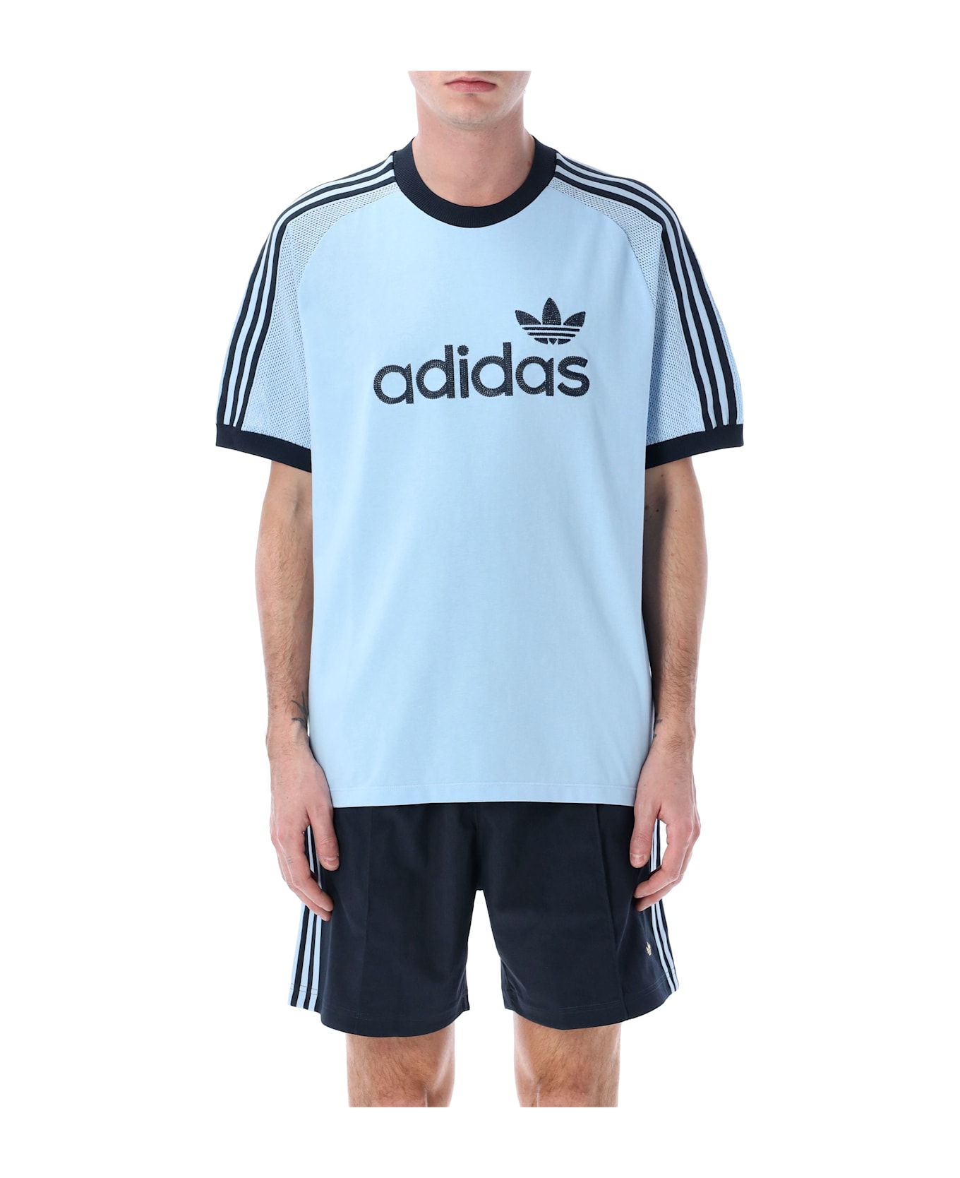 Premium Knitted T-shirt By Adidas Originals. Featuring: Cotton Jersey Crewneck Knitted Raglan Short Sleeves Ribbed Neck And Cuffs Embroidered Logo At Front 3-stripes Loose Fit Model Il 1,90 M And Wears Size L