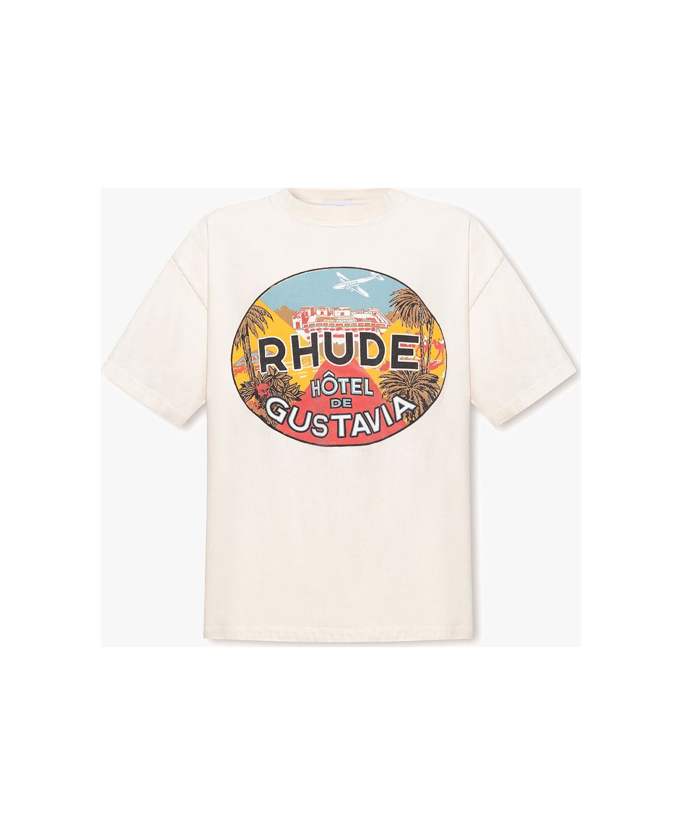 Cream crewneck T-shirt from Rhude. Made of cotton, this style features a colourful graphic print with the brand's logo on the front and short sleeves.