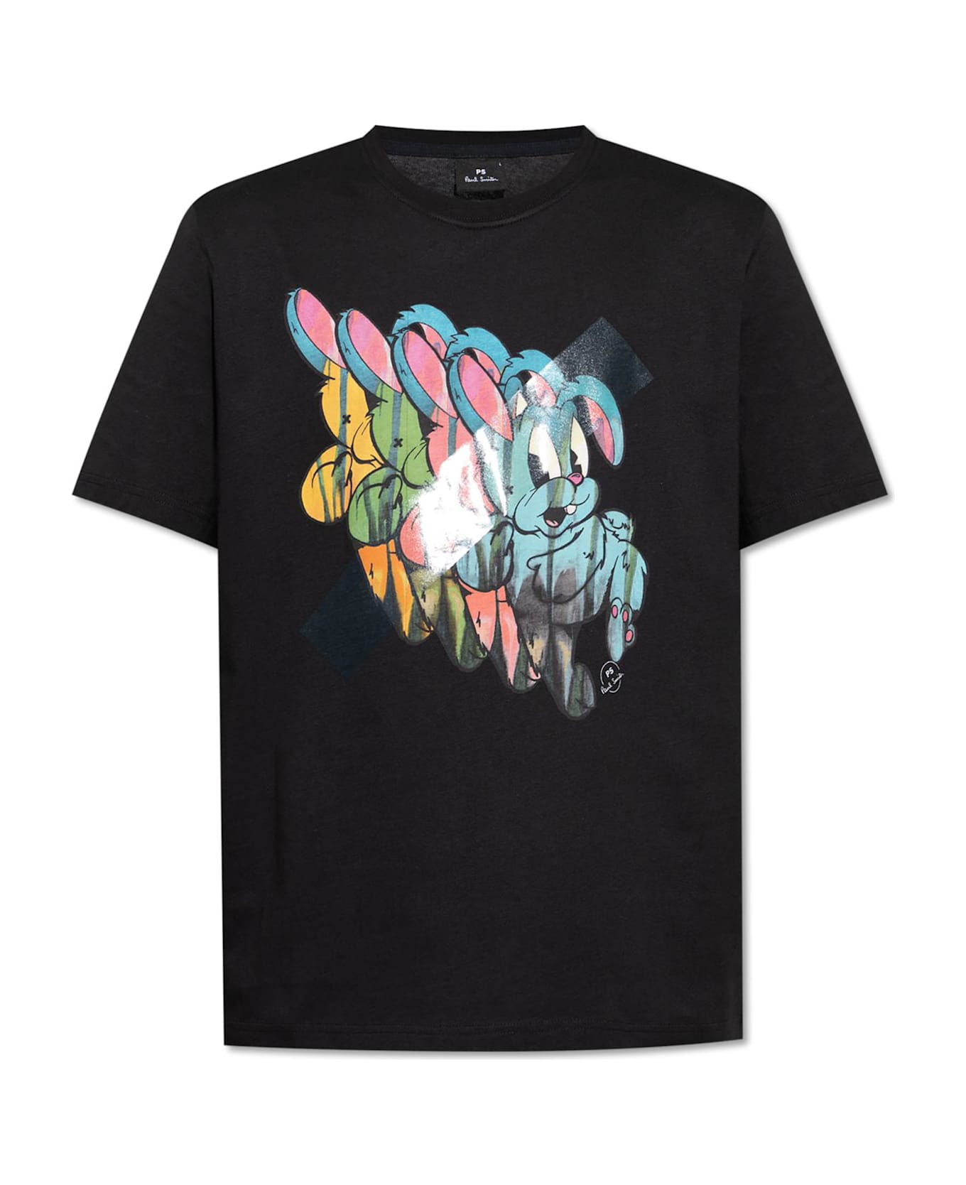 Presenting an exquisite blend of playfulness and sophistication, this T-shirt with Colorful Print by PS Paul Smith epitomizes contemporary elegance. Impeccably crafted from luxurious natural cotton, it promises unparalleled comfort. The classic crew neck design and short sleeves evoke timeless charm, while the striking graphic of a multicolored rabbit on the front showcases a vivid aesthetic with its gradient transitions, ensuring you radiate modern flair. The subtle inclusion of the