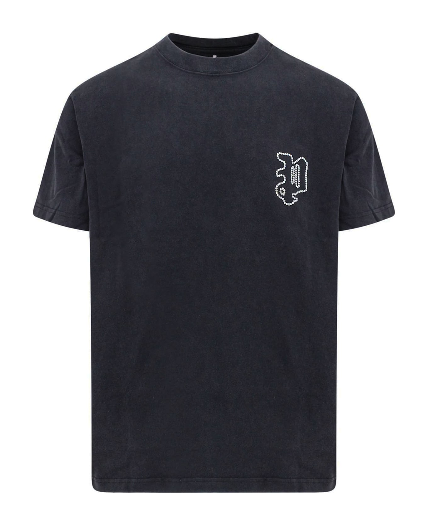 Black cotton Gothic Crystals Tee T-shirt, jersey texture, stonewashed, ribbed crew neck, short sleeves, crystal-monogram embellishment to the chest, crystal-logo embellishment to the back, straight hem Composition: Cotton, 100%