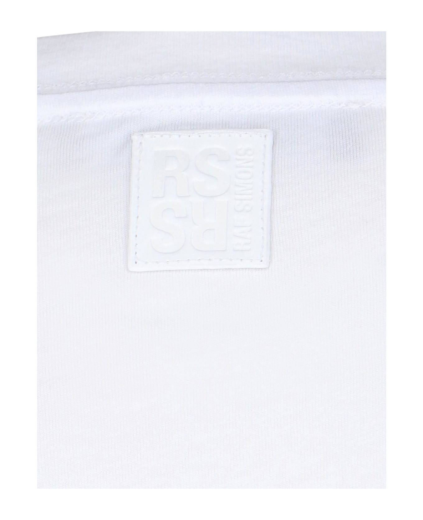 Raf Simons white cotton T-shirt with a crew neck, short sleeves, a maxi black 'R hand' print on the front and a straight hem.