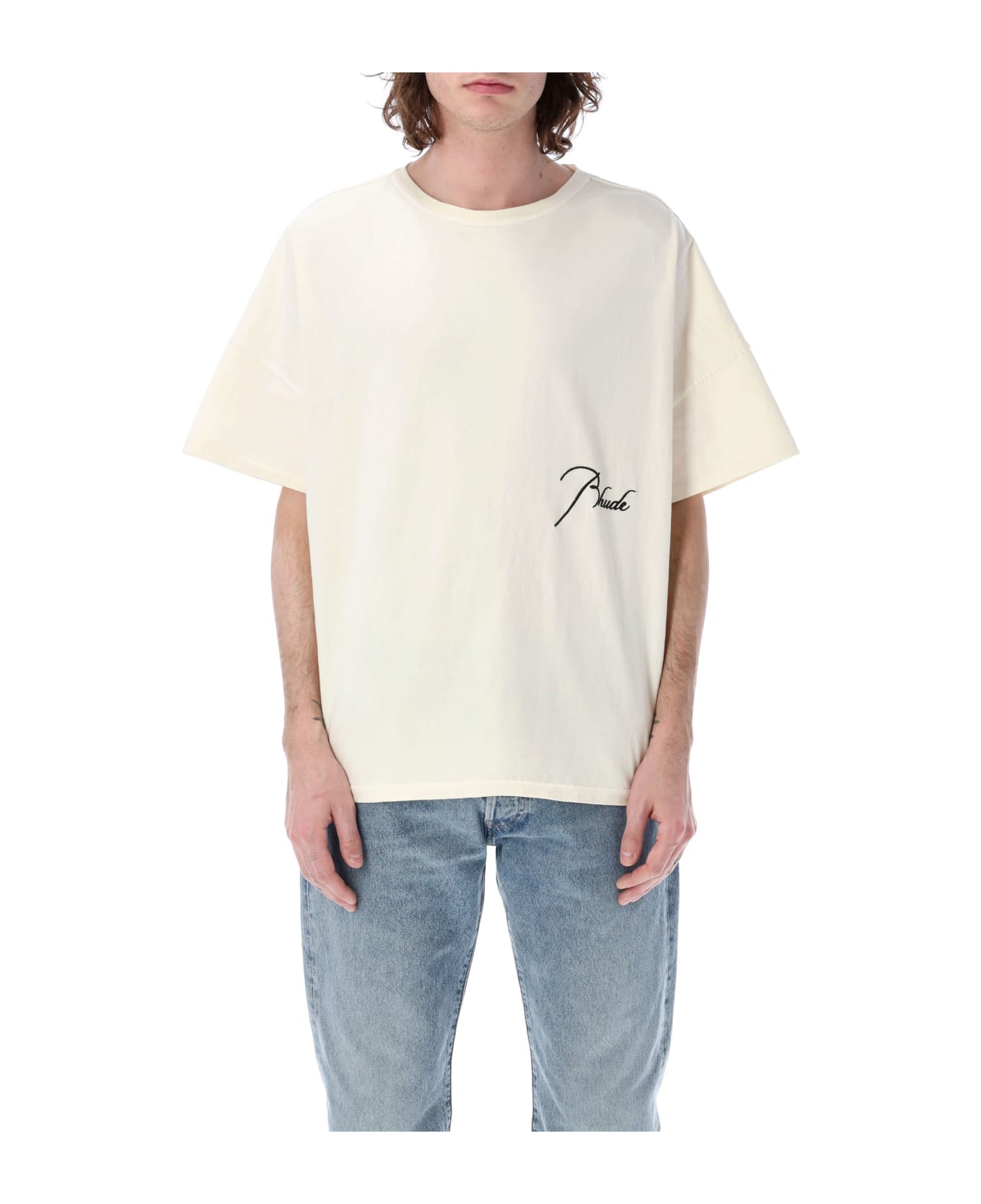 Cotton Reverse T-shirt By Rhude. Featuring: Ribbed Crew Neck Short Sleeves Rhude Script Logo Embroidered At Front Vintage Wash Loose Fit The Model Is 1,90 M Tall And He's Wearing Size L