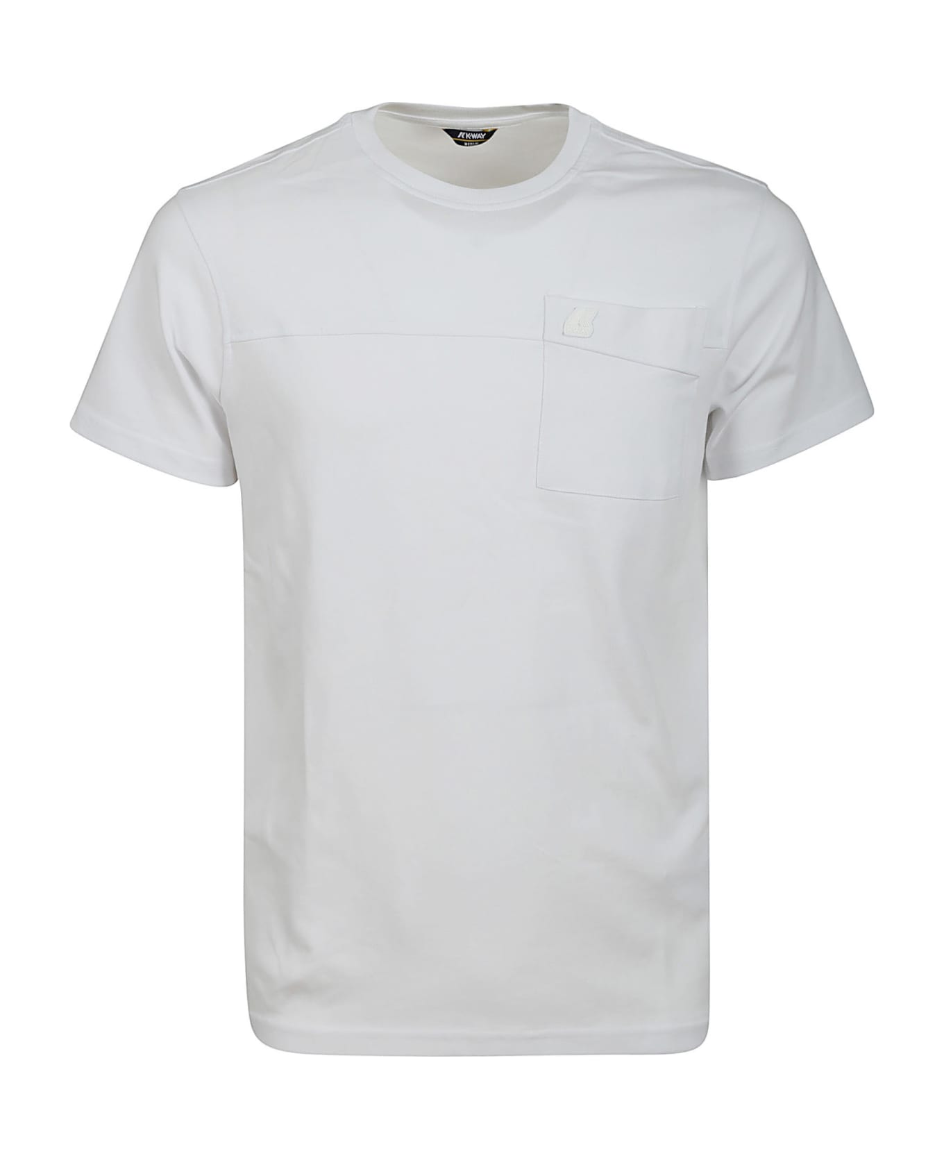 K-Way White cotton T-shirt, chest pocket, logo detail.