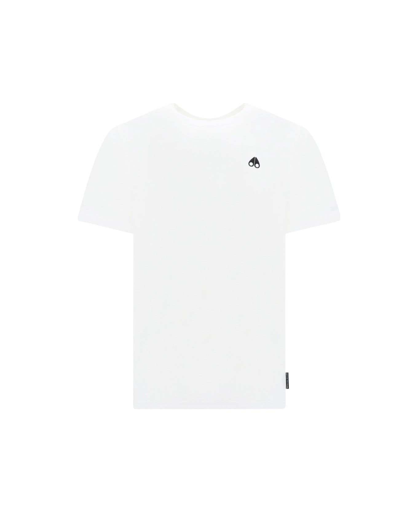 Cotton satellite t-shirt by moose knuckles, ribbed crew neck, contrasting iconic brand monogram on front, tone-on-tone stitching, oversize fit.