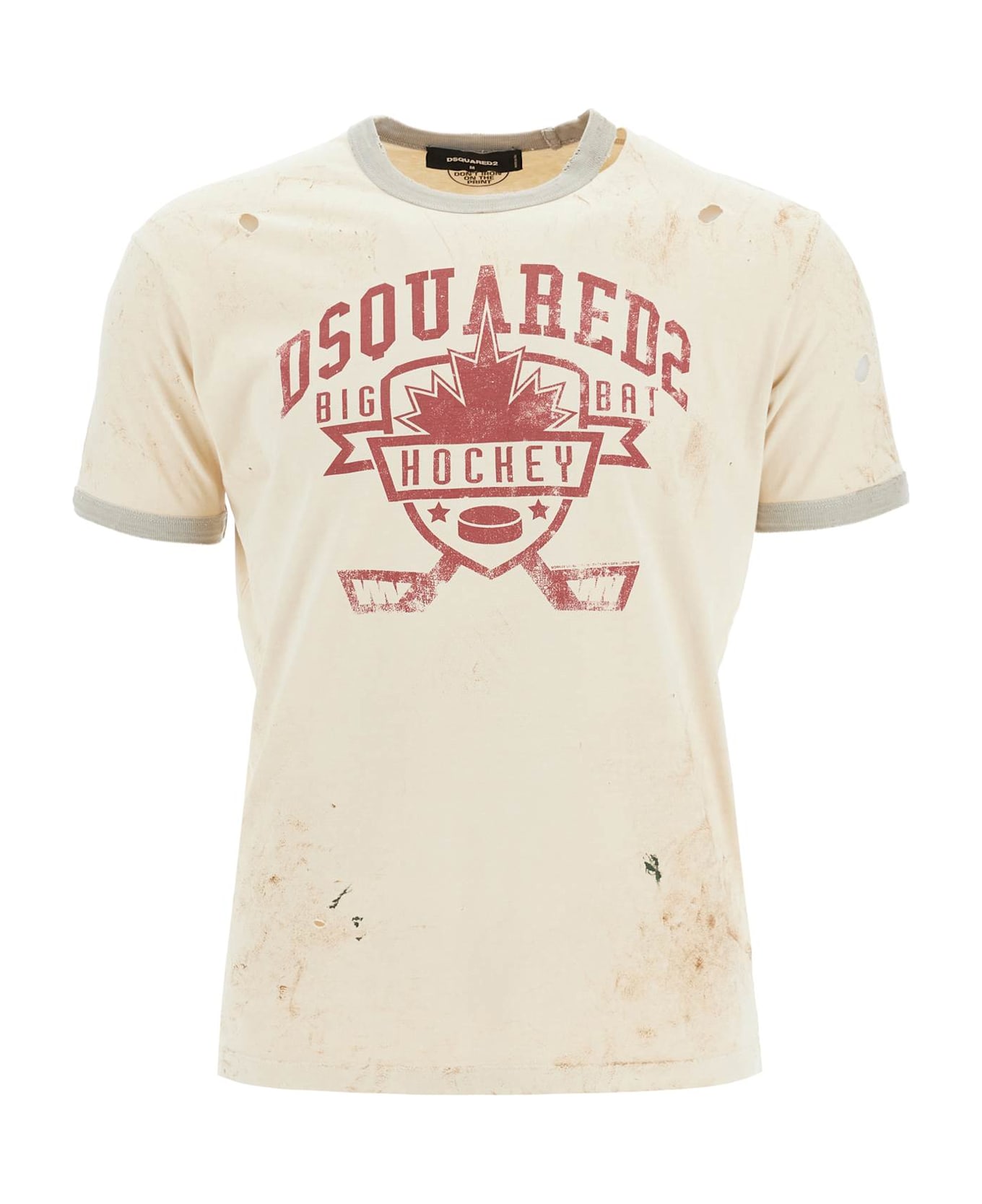 The DSQUARED2 T-shirt offers casual luxury in premium cotton. Champagne color with vintage effect and bold logo. Comfort and Italian style for the modern man. Made in Italy for superior quality.