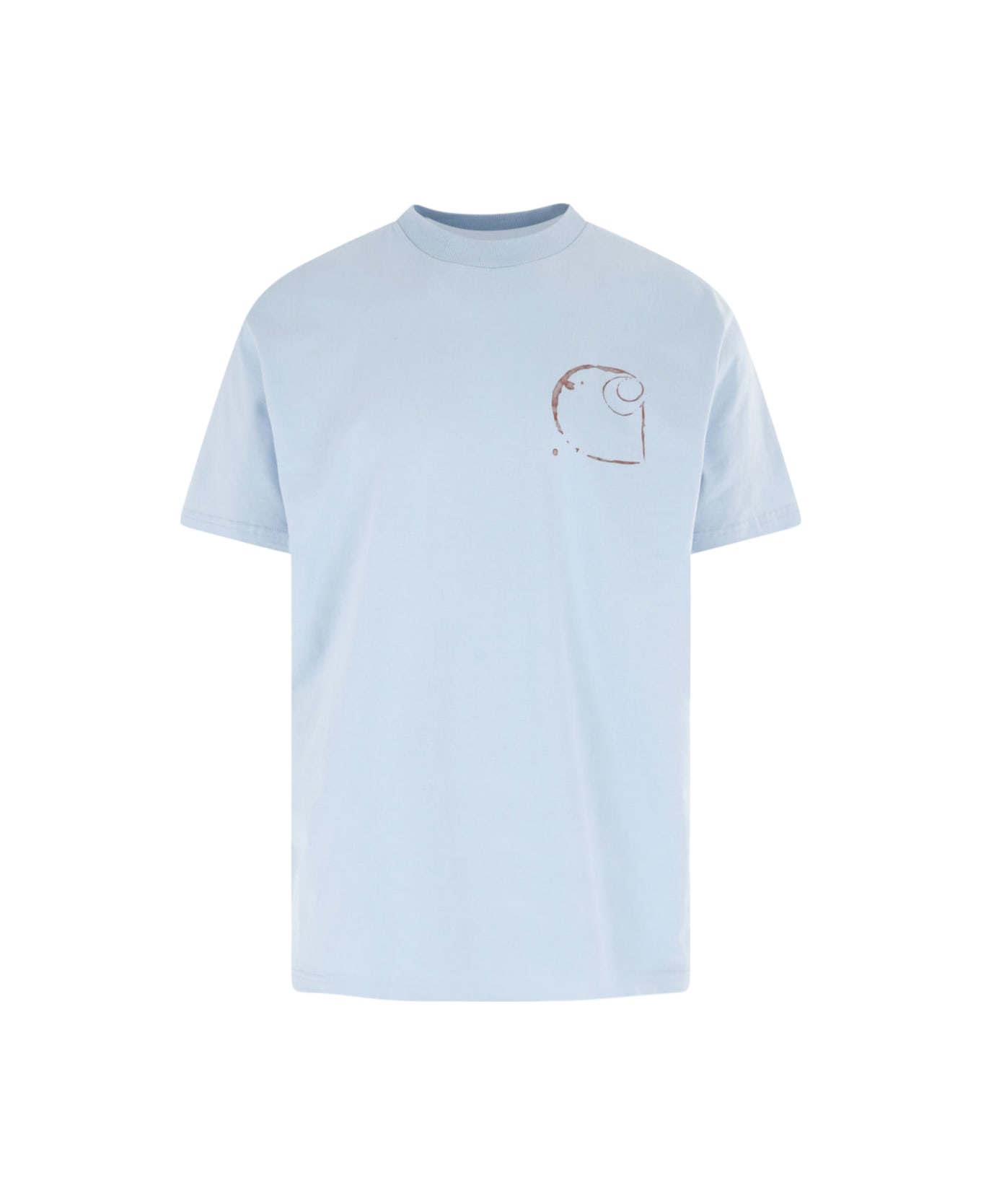 Carhartt WIP 'S/S Java' light blue cotton crew neck t-shirt with short sleeves, logo print on the chest, straight hem. Composition: 100% Cotton