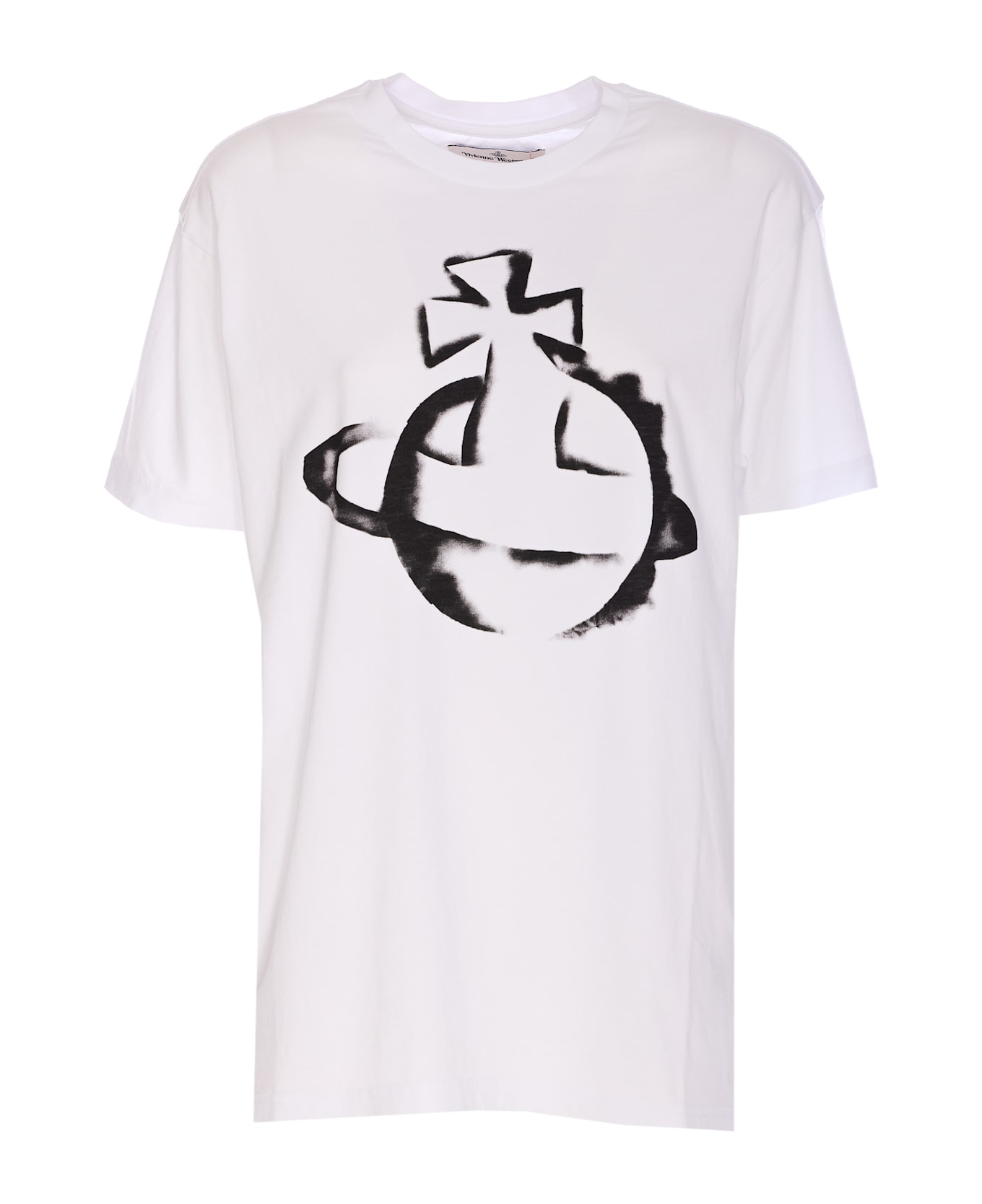 Vivienne Westwood white Stencil Orb classic t-shirt, crewneck, print logo on the front Composition: 100% Cotton, 98% Cotton, 2% Elastane
