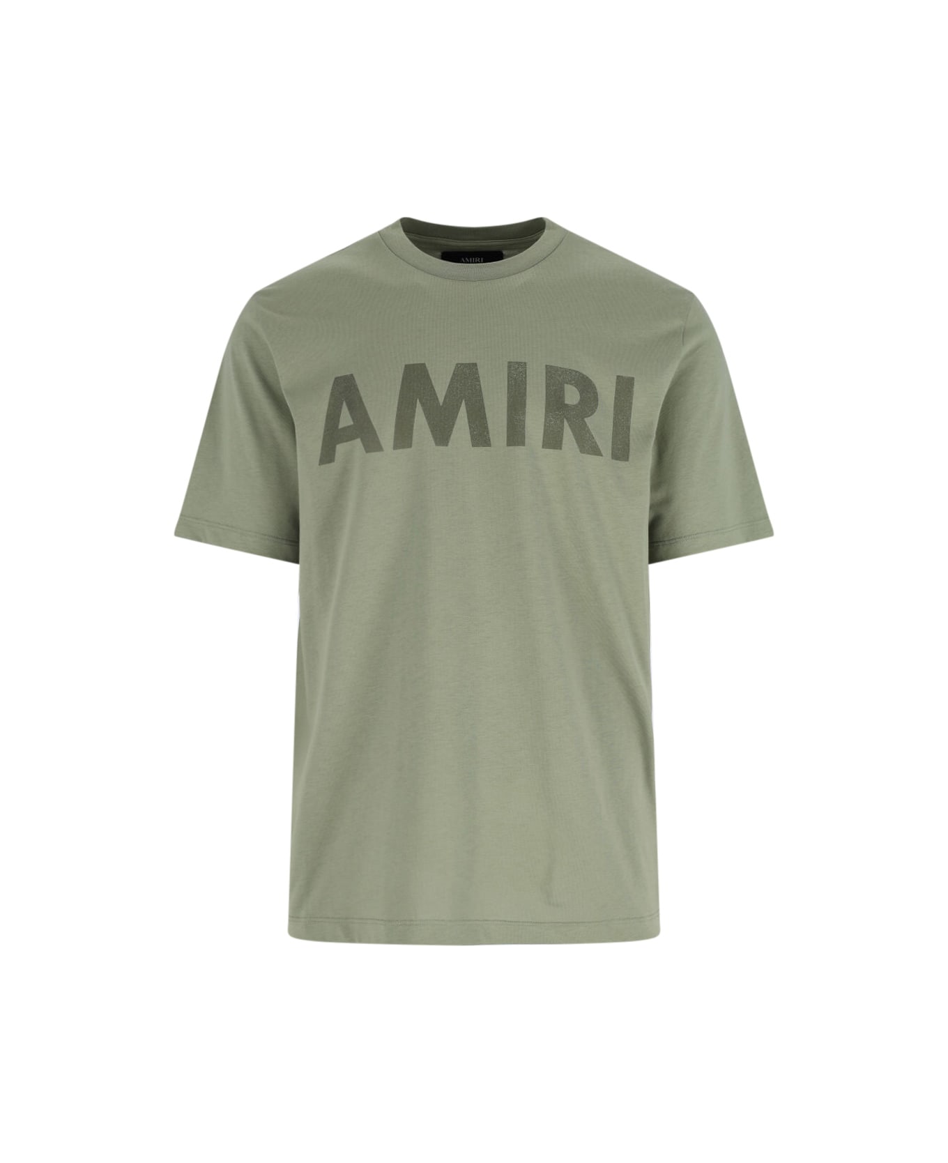 Amiri 'Stencil' green cotton crew neck t-shirt with short sleeves, maxi print usured logo on the chest, straight hem.